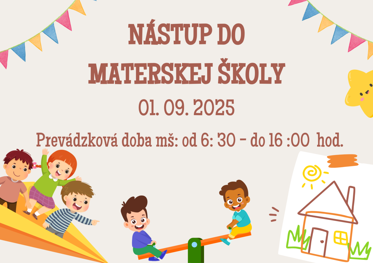 oznamujeme Vám, že nástup detí do materskej školy bude v pondelok 1. 9. 2025.