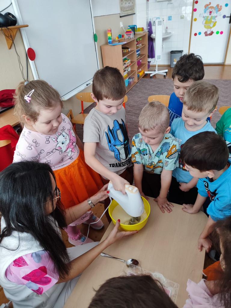 Deti z triedy Včielky si vyskúšali prípravu koláča. Práca deti veľmi bavila.