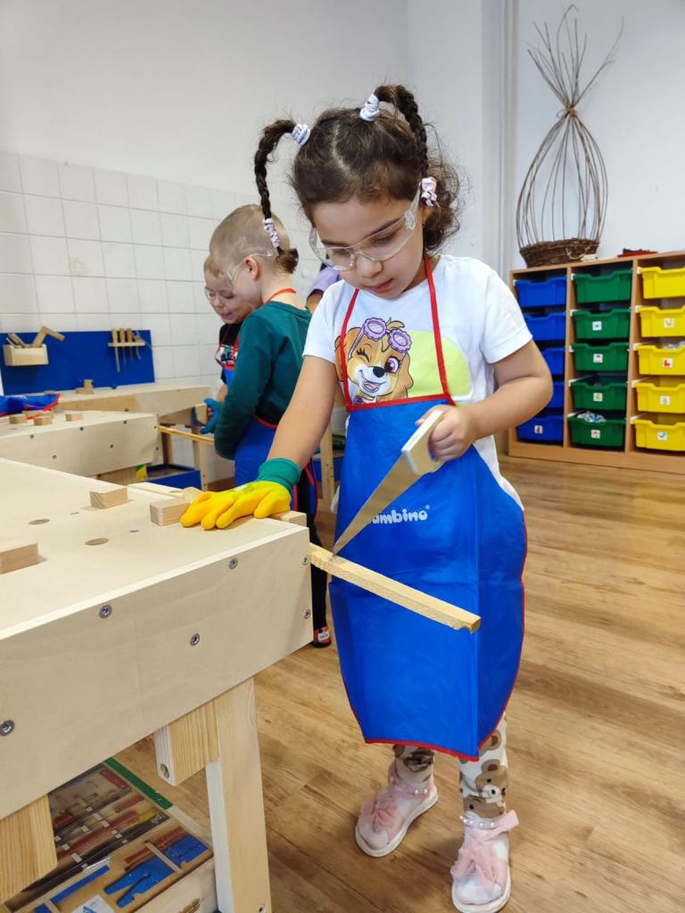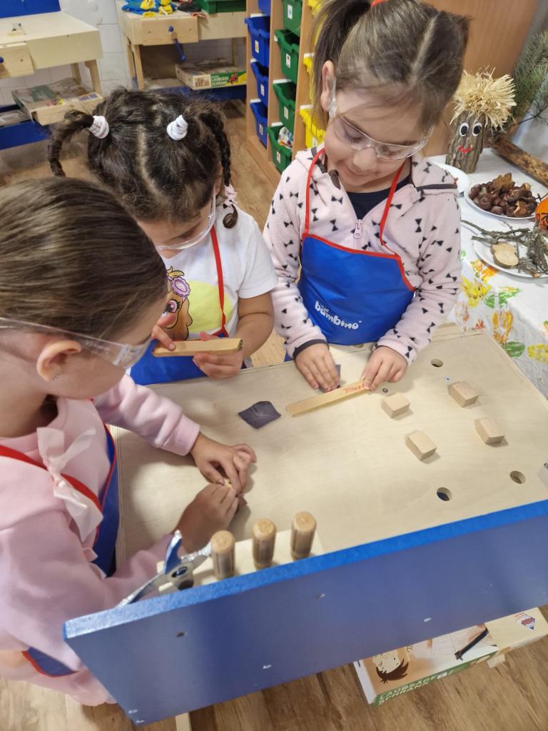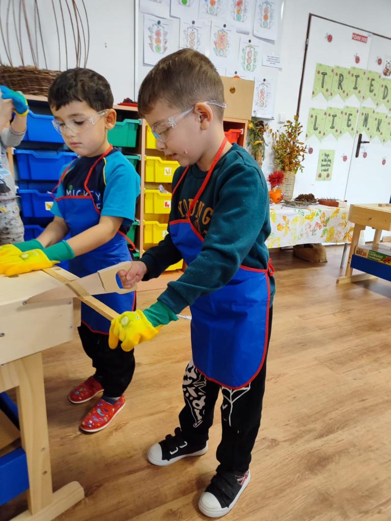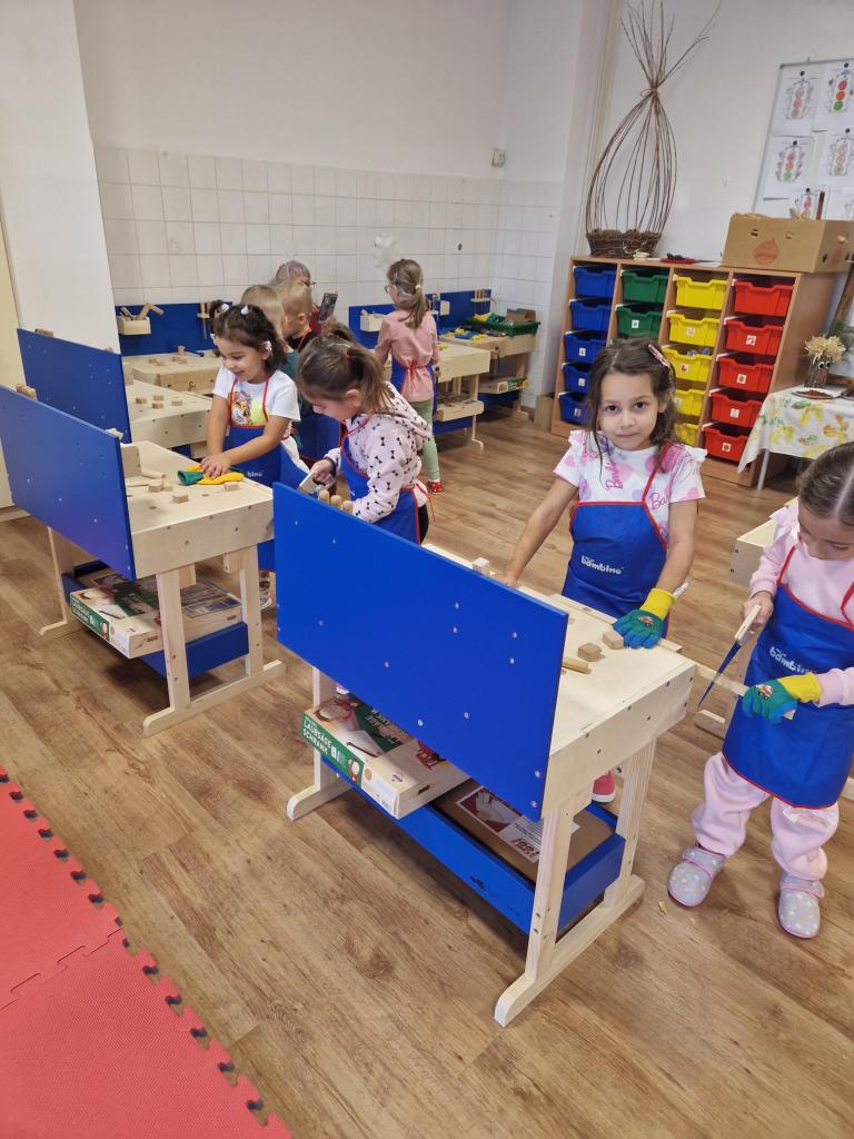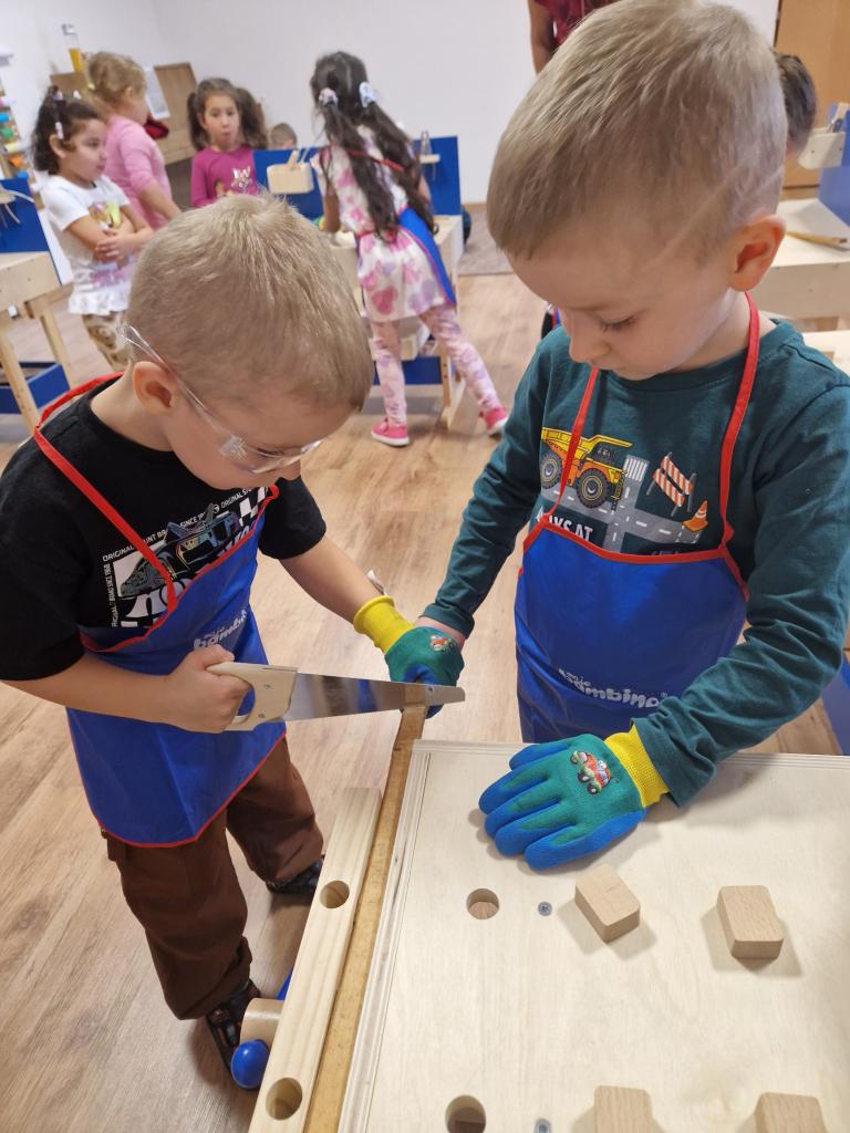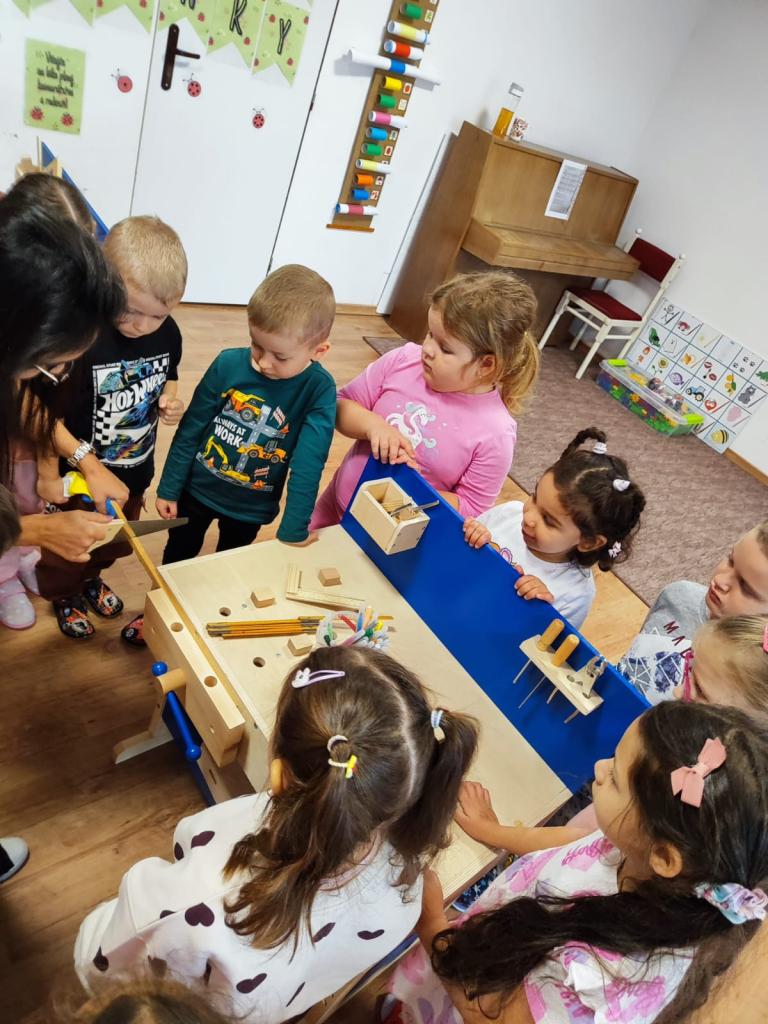 V technických kútikoch sa uskutočnila aktivita, pri ktorej mohli deti overiť svoje zručnosti v pílení a brúsení dreva. Tieto činnosti im umožnili rozvíjať praktické zručnosti a spoznať základy práce s drevom.Včielky prejavili veľké nadšenie a radosť z tejto činnosti.
