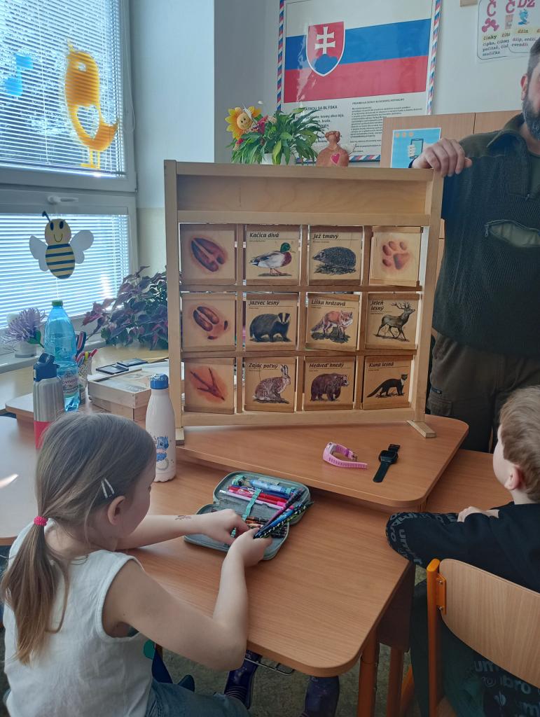 Beseda bola interaktívna a veľmi pútavá. Pre žiakov boli pripravené rôzne aktivity: skladanie drevených puzzle, hľadanie správnych dvojíc v spájačkách, otláčanie pečiatok zvieracích stôp, určovanie drevín, či názorná ukážka kôry napadnutej lykožrútom. Deti mali možnosť vyskúšať si, aké je to pracovať s materiálmi, ktoré les poskytuje a lepšie porozumieť súvislostiam medzi prírodou a človekom.