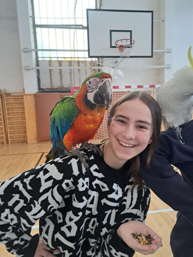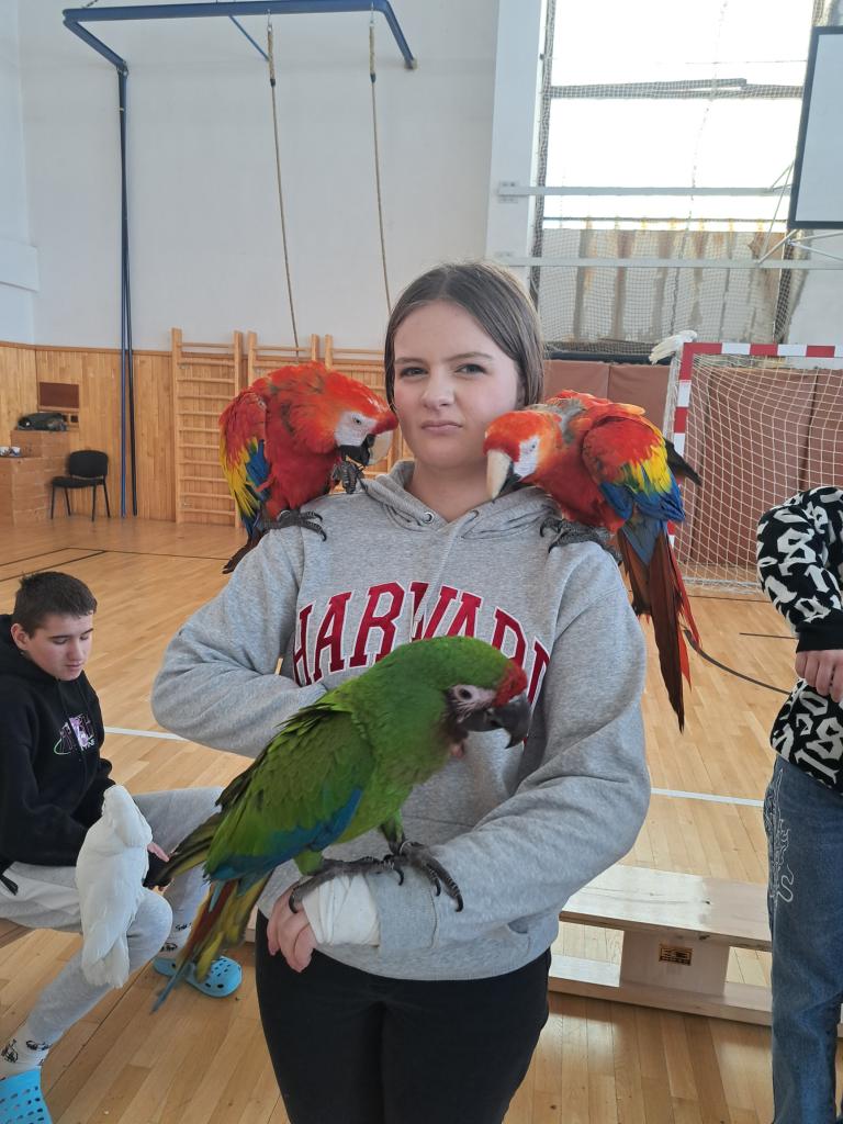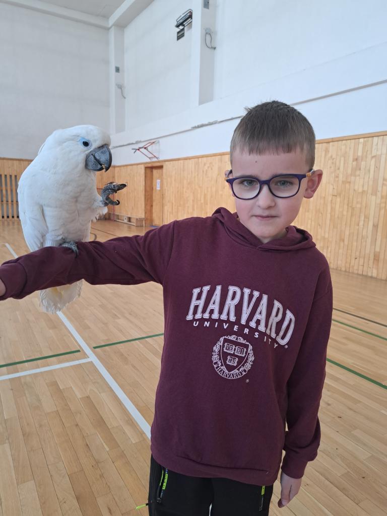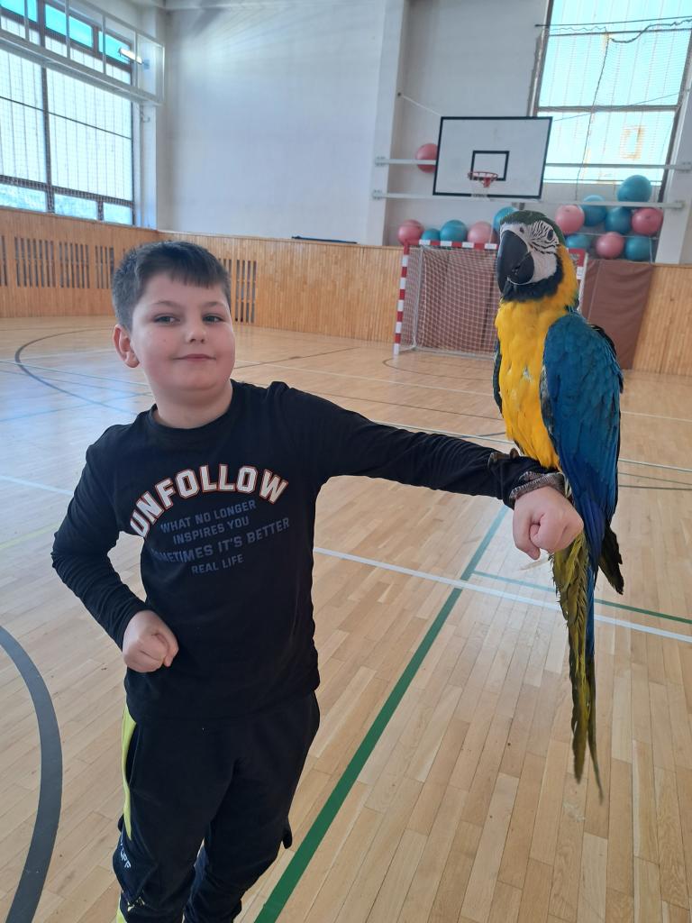 Očká našich žiakov sa rozžiarili, na tvárach sa im vyčaril úsmev, keď vošli do telocvične a v nej lietali pestrofarebné papagáje. Našu školu navštívilo ARAKOVO so svojím environmentálnym programom s papagájmi. Spoločnosť ARAKOVO je prevádzkovateľom jedinečného projektu, zaoberá sa, chovom a vystavovaním exotického vtáctva na profesionálnej úrovni pod dohľadom štátnych orgánov a veterinárov. Špecializujú sa na ary, kakadu a zobákorožce. Pre žiakov si pripravili odbornú prednášku o druhoch a živote exotického vtáctva spojenú s praktickým kontaktom s exotickým vtáctvom. Žiaci získali neoceniteľné poznatky a skúsenosti zo života exotického vtáctva, ktoré je na Slovensku možné spoznať len okrajovo. Zážitkové učenie je pre žiakov najefektívnejšie a samotná manipulácia, pohladkanie, kŕmenie bolo pre nich nezabudnuteľným zážitkom. Poďakovanie patrí aj rodičovskému združeniu ,,Deti spod Kriváňa“, ktoré uhradilo vstupné pre svojich členov.