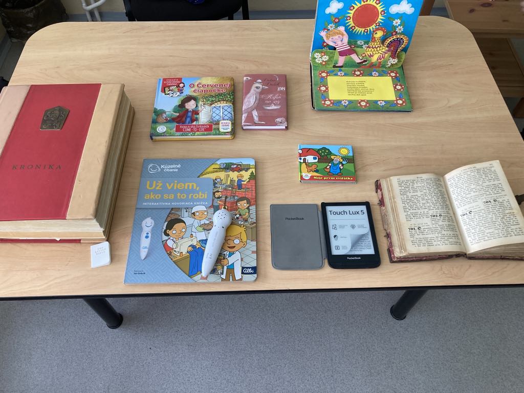 Na úvod sa dozvedeli o histórii kníh – ako vznikli, ako sa šírili a ktoré knihy patria medzi najčítanejšie na svete. Mali tiež jedinečnú možnosť vidieť rôzne druhy kníh – starý spevník v drevenej väzbe písaný švabachom, veľkú školskú kroniku, miniatúrnu Bibliu, interaktívne knihy, elektronickú čítačku či vypučuť si audioknihu.