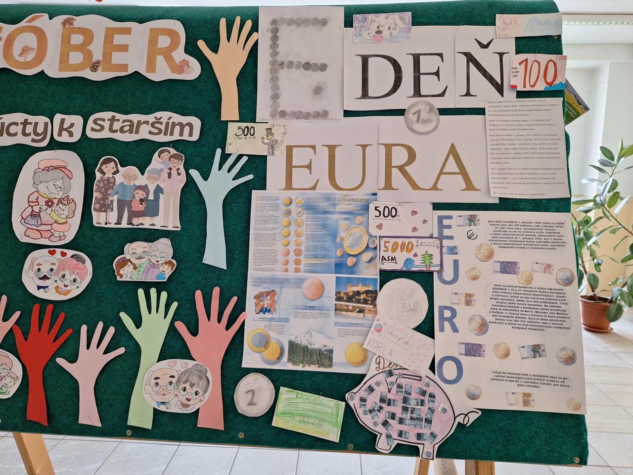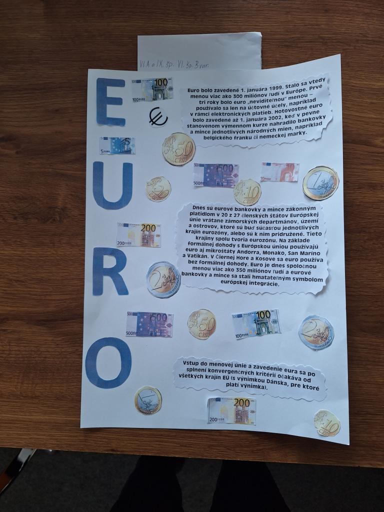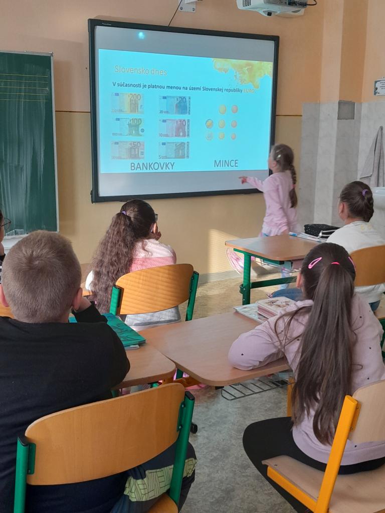 Rozvoj finančnej gramotnosti má v dnešnej spoločnosti nezastupiteľné miesto. Prostredníctvom zaujímavých aktivít žiaci spoznávali našu menu: tvorba peňaženky, výroba bankoviek, hra na obchod, diskusia o význame peňazí, sporení, rodinnom rozpočte,  triedenie mincí a  bankoviek, práca so skutočnými eurami, počítanie, pojmovo obrázková mapa, prezentácie, kvíz a ďalšie činnosti, ktoré boli začlenené do výchovno – vzdelávacieho procesu. V školskom rozhlase si vypočuli reláciu a  čokoládová minca, ktorú dostali, bola odmenou  za vynaloženú  prácu a aktivitu.