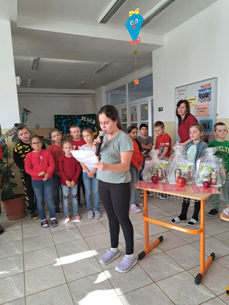 Dňa 21. októbra 2024 sme na našej škole usporiadali druhý ročník súťaže o najkrajšie jabĺčko zo záhradky v rámci podujatia Deň jablka. V predchádzajúcom týždni mohli žiaci  priniesť jabĺčka zo svojich domácich záhrad. Každé jabĺčko dostalo vlastné číslo, následne prebehlo hlasovanie do ktorého sa zapojili nielen žiaci, ale aj učitelia a zamestnanci školy. Súčasťou podujatia bolo vyhlásenie výsledkov súťaže a aj krátky kultúrny program. Dorotka nám prečítala báseň o jabĺčku a žiaci z 3. triedy zaspievali pieseň  ,, Červené jabĺčko“, čím prispeli k príjemnej atmosfére dňa. Podujatie sme ukončili spoločnou ochutnávkou jablkových dobrôt, ktoré si žiaci doniesli z domu.