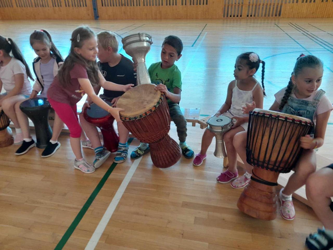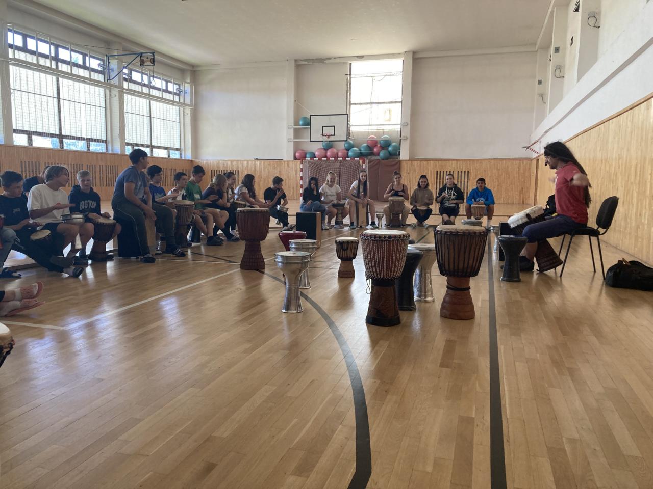 Dňa 25.6.2024 naša škola zažila umelecký zážitok v podobe  eLKá perkusie.  V prvej časti workshopu získali naši žiaci teoretické vedomosti o týchto nástrojoch. V druhej časti mali žiaci možnosť si aj sami vyskúšať hrať na tomto nástroji. V závere si skúsili celé skupiny spolu zahrať s nejakými obmenami. I keď žiaci hrali prvýkrát na perkusiách, išlo im to veľmi pekne.
