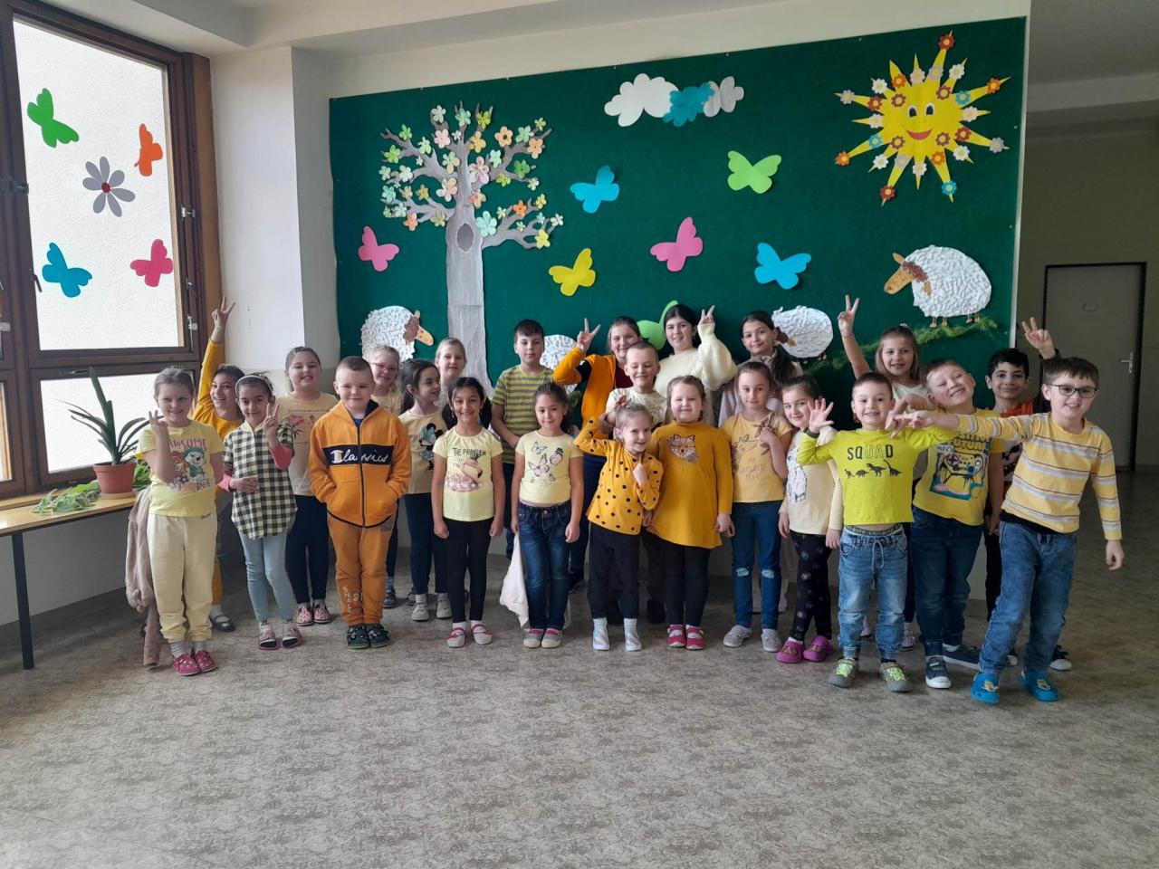 V predveľkonočný aprílový týždeň od 3.4 do 5.4. bolo v škole farebne. Pýtate sa prečo? - pretože sme spoločnými silami realizovali zábavnú aktivitu FAREBNÝ TÝŽDEŇ. Všetci, malí aj veľkí, učitelia aj žiaci si „prevetrali šatníky"  a každý deň si obliekli jednu vec príslušnej farby: v pondelok – žltú, v utorok – červenú a v stredu – zelenú. Videli sme rôzne tričká, šaty, nohavice, sukne, mikiny, ale aj obľúbené ponožky. Takýmto spôsobom sme si všetci pripomenuli, že svet okolo nás nie je čiernobiely.