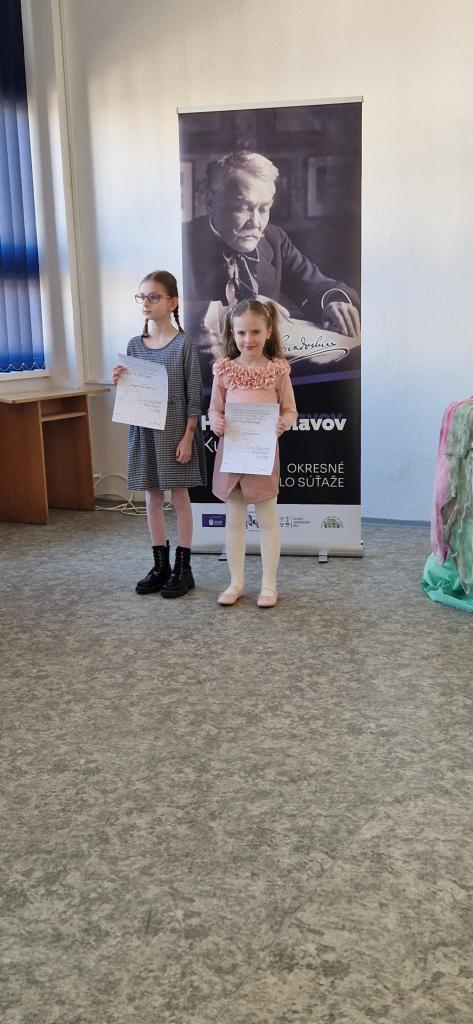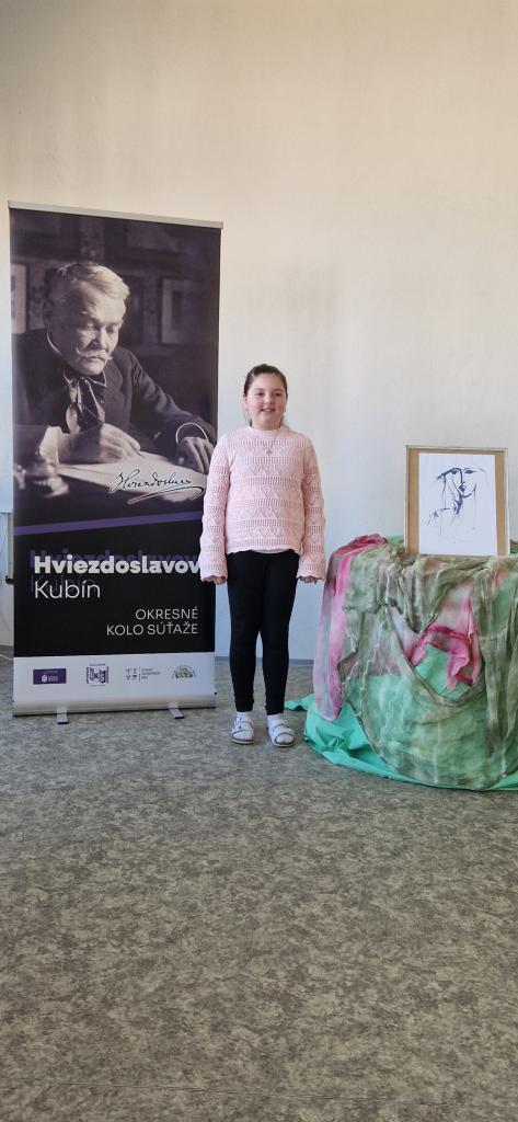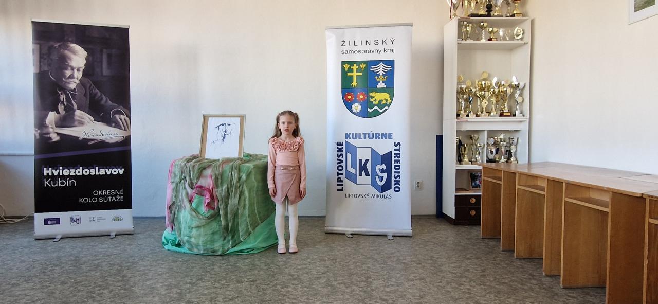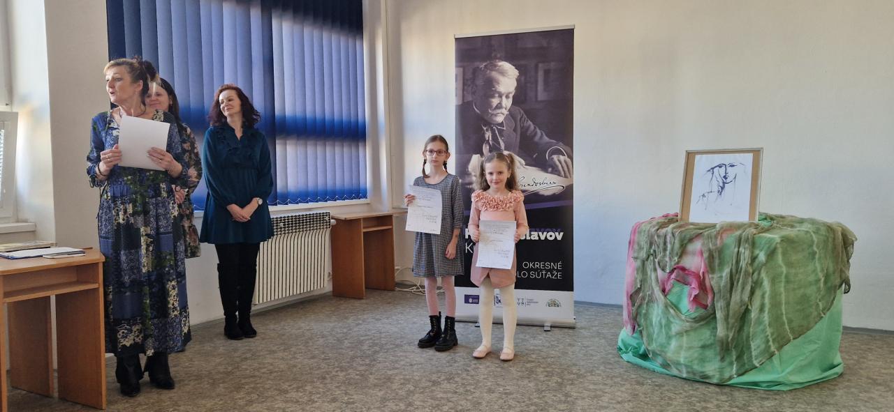 Dňa 20. marca 2025 našu školu reprezentovali Simonka Gulašiová (VI. trieda), Rebeka Hálková (IV. trieda) a Ella Pafková (III. trieda) na okresnom kole celoštátnej postupovej súťaže a prehliadky v umeleckom prednese poézie a prózy Hviezdoslavov Kubín v Liptovskom Mikuláši.
