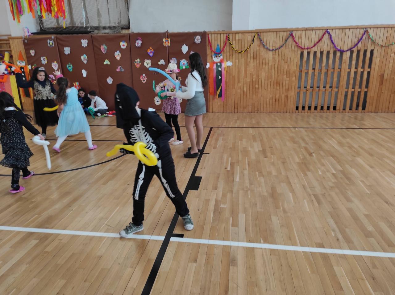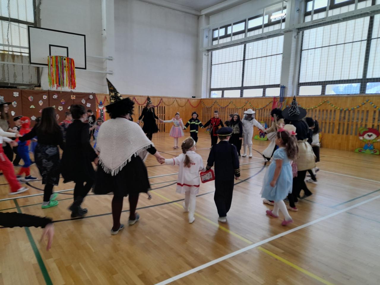 Koniec fašiangového obdobia žiaci 1. stupňa  ukončili karnevalovou zábavou. Triedne pani učiteľky a pani vychovávateľky pre svojich žiakov pripravili nezabudnuteľný karneval. Po predstavení masiek porota vyhodnotila tie najlepšie a  kreatívne masky, potom sme si zatancovali a zasúťažili. Po prestávke mali deti prekvapenie, ktoré sa im najviac páčilo. Každý žiak sa naučil z podlhovastého balóna vytvoriť meč, niektorí aj zvieratko alebo prilbu na hlavu. Deti si spolu s pani učiteľkami karneval veľmi užili a už sa tešia  na ten ďalší.