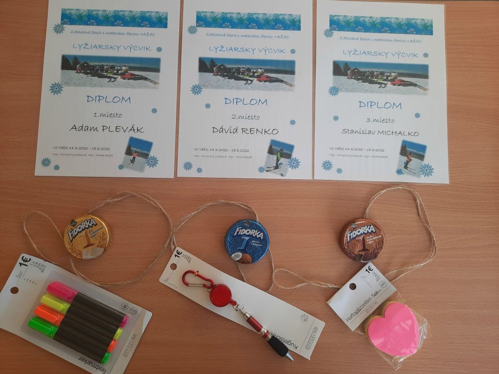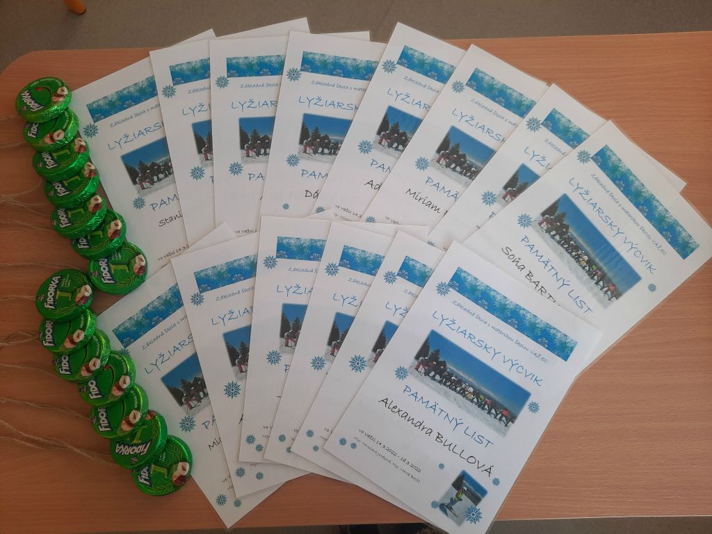 V dňoch 14.3 – 18.3. 2022 sa žiaci našej školy zúčastnili základného lyžiarskeho výcviku v Snow parku Lučivná. Výcviku sa zúčastnilo 14 žiakov, ktorí si pod vedením pedagógov Mgr. M. Juhásovej a Mgr. M. Baláža osvojovali pohybové zručnosti spojené s lyžovaním.  Snehové podmienky  boli výborné. Počasie slnečné ako stvorené na jarnú lyžovačku.   Žiaci, ktorí nevedeli lyžovať, získali základy zjazdového lyžovania a tí zdatnejší sa vo svojich lyžiarskych schopnostiach zdokonalili.  Na záver sme pre žiakov pripravili preteky, v ktorých si mohli preveriť svoje lyžiarske schopnosti. Vyhodnotenie pretekov, odovzdanie diplomov, medailí, cien a pamätných listov s fotografiou sa uskutočnilo v škole.