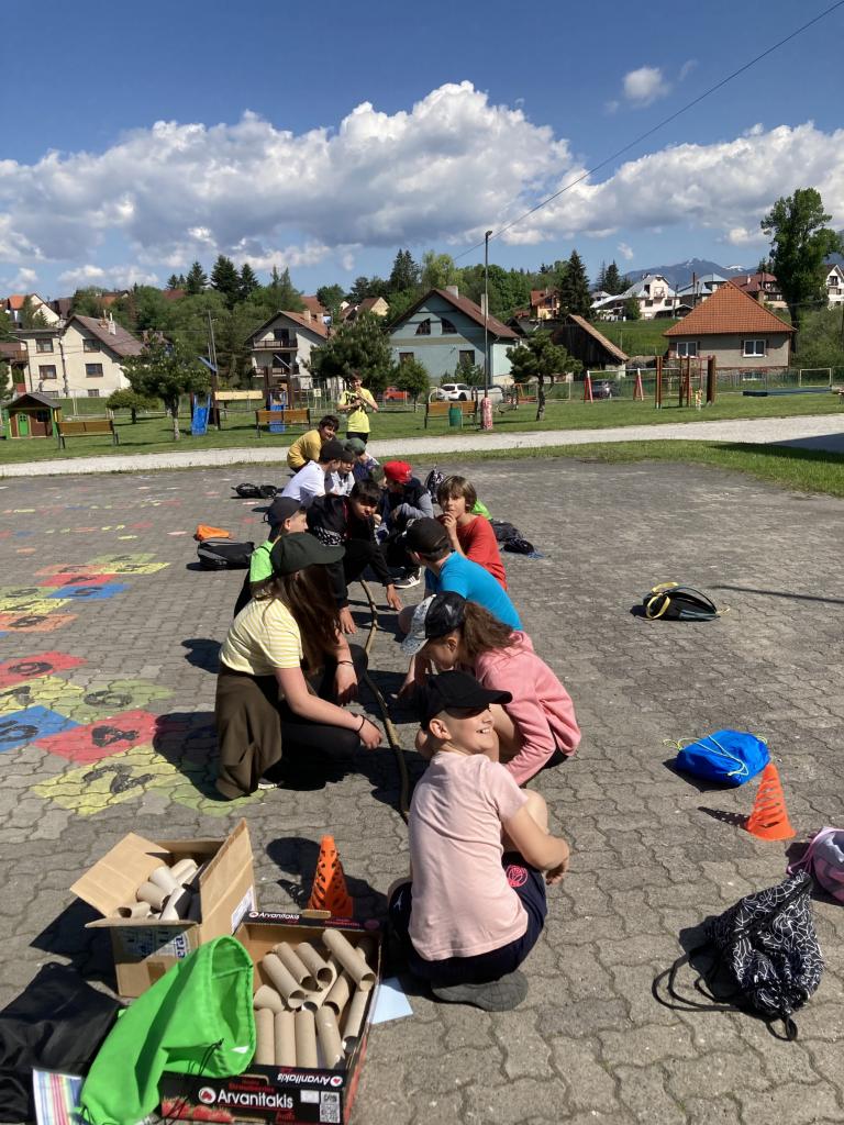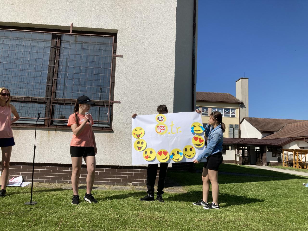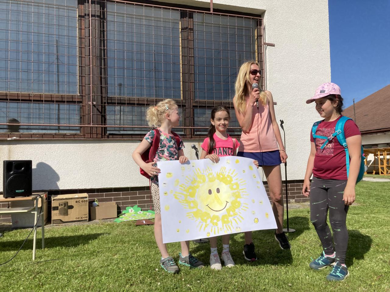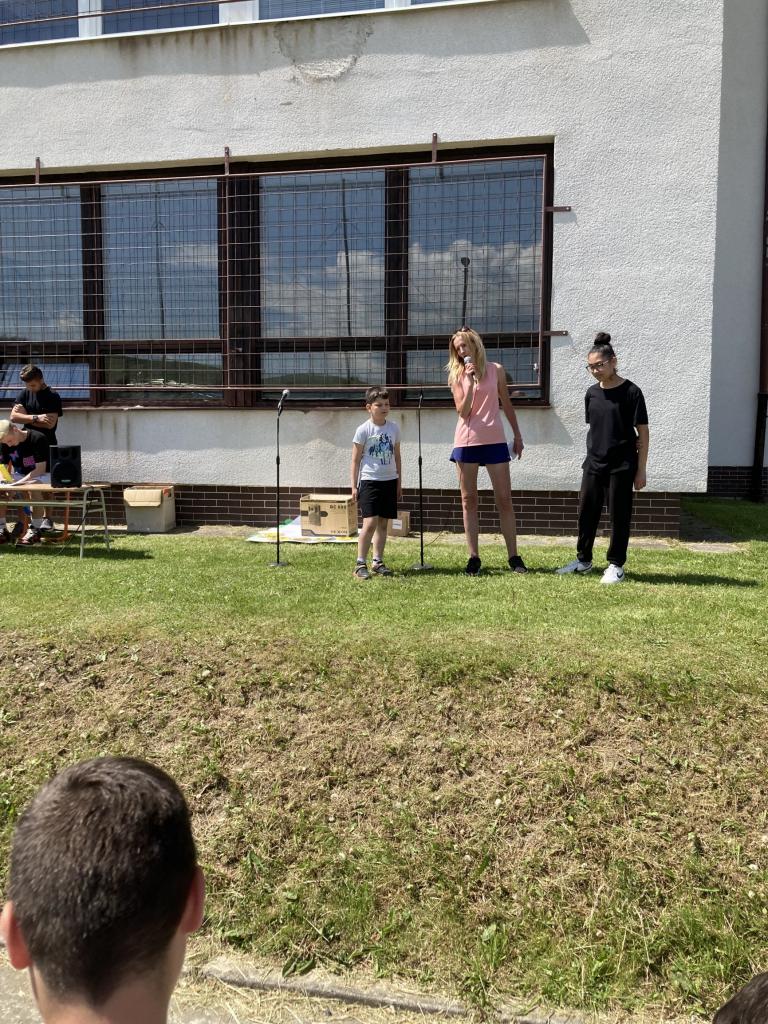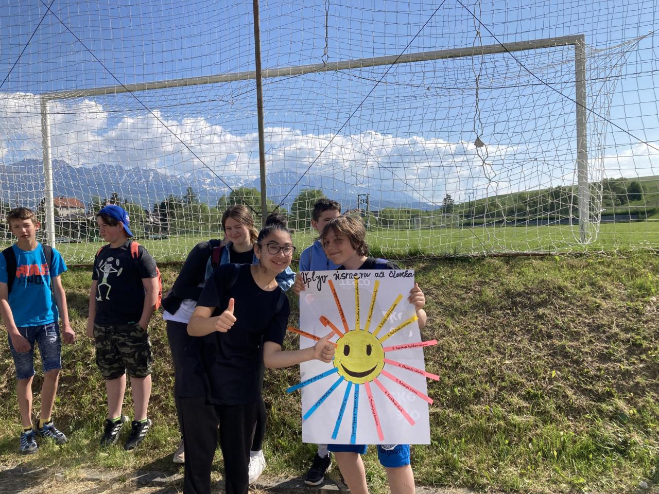 Na prvej hodine na túto tému žiaci vo svojich triedach tvorili. Výsledkom ich spoločnej práce, ktorú si aj odprezentovali, boli rôzne plagáty a pojmové mapy. Prváci vytvorili svoj strom radosti, piataci otextovali svojimi veršami známu pieseň „Úsmev“, štvrtáci zasa pripravili malé sladké prekvapenie pre ostatných spolužiakov. V jednotlivých zábavno-športových úlohách v areáli školy potom deti získavali písmenká z tajničky, ktorú na záver mali za úlohu poskladať. Veľkí aj malí, všetci si v úlohách počínali veľmi dobre a tak sa im podarilo dopracovať k jej riešeniu: „Úsmev nikdy neminie svoj cieľ.“ Deň sme zakončili voľnými aktivitami na futbalovom ihrisku. K veselej nálade veľkou mierou prispeli aj naši deviataci, ktorí sa postarali o hudbu a ozvučenie.