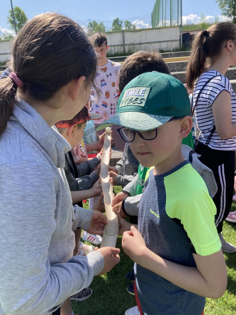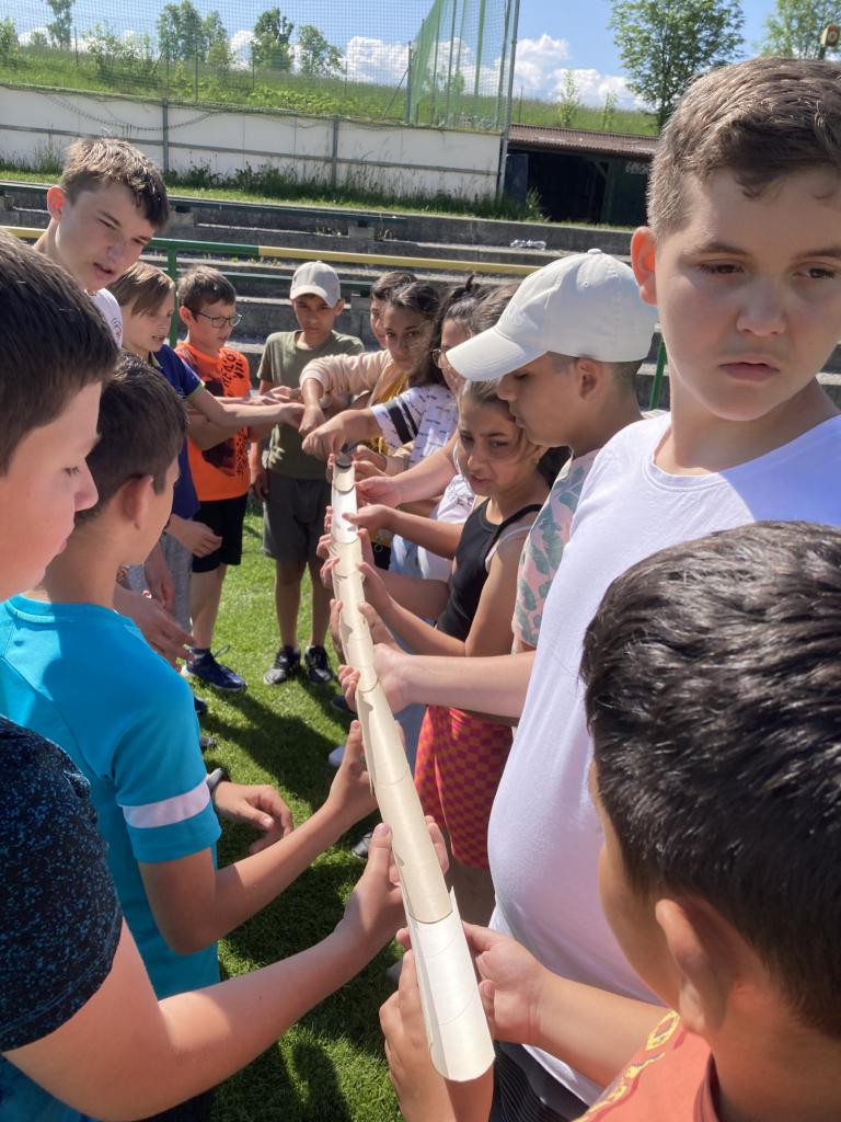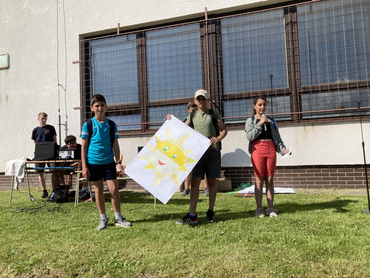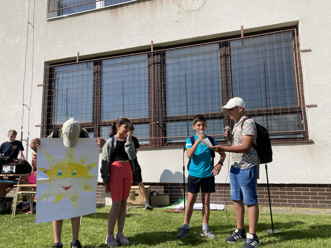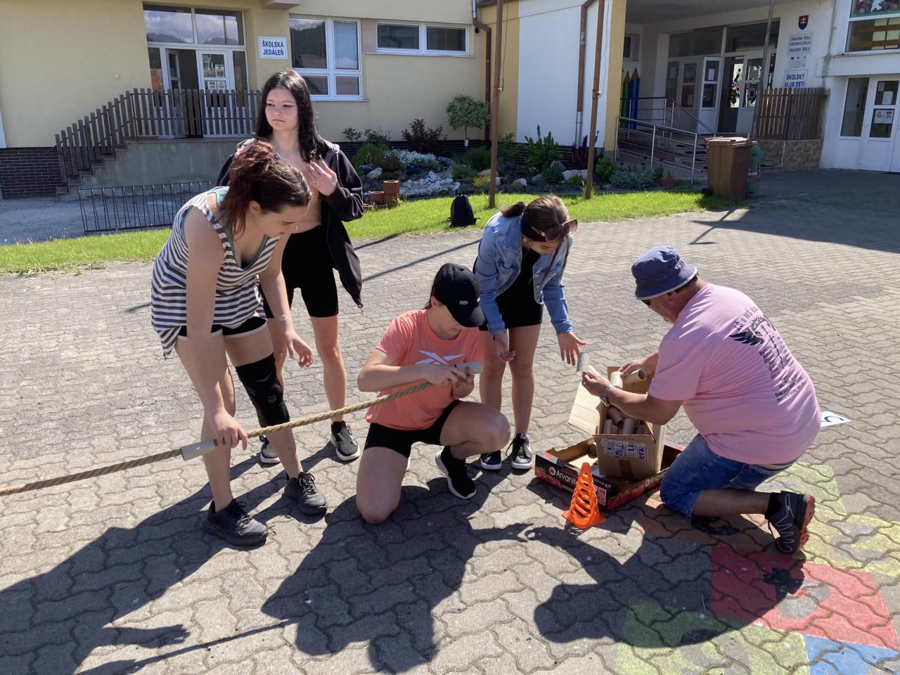 Na prvej hodine na túto tému žiaci vo svojich triedach tvorili. Výsledkom ich spoločnej práce, ktorú si aj odprezentovali, boli rôzne plagáty a pojmové mapy. Prváci vytvorili svoj strom radosti, piataci otextovali svojimi veršami známu pieseň „Úsmev“, štvrtáci zasa pripravili malé sladké prekvapenie pre ostatných spolužiakov. V jednotlivých zábavno-športových úlohách v areáli školy potom deti získavali písmenká z tajničky, ktorú na záver mali za úlohu poskladať. Veľkí aj malí, všetci si v úlohách počínali veľmi dobre a tak sa im podarilo dopracovať k jej riešeniu: „Úsmev nikdy neminie svoj cieľ.“ Deň sme zakončili voľnými aktivitami na futbalovom ihrisku. K veselej nálade veľkou mierou prispeli aj naši deviataci, ktorí sa postarali o hudbu a ozvučenie.