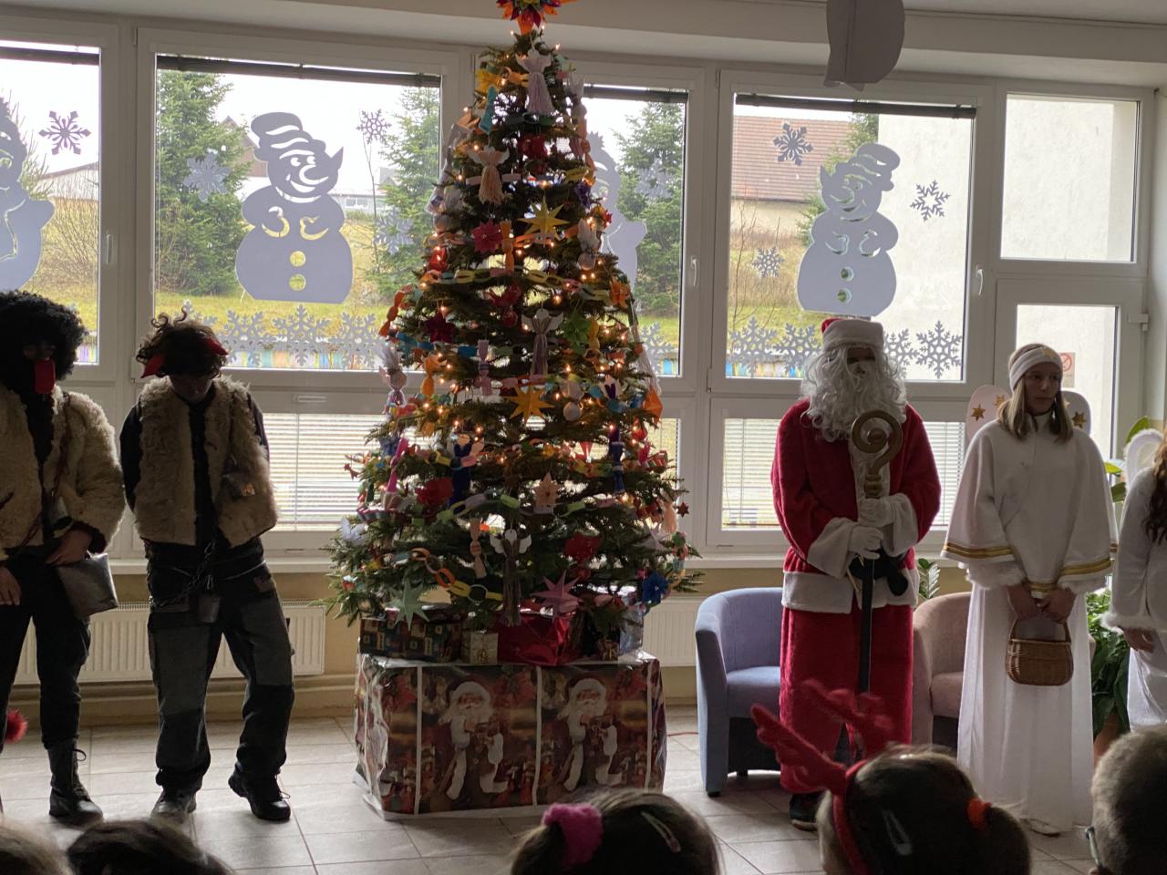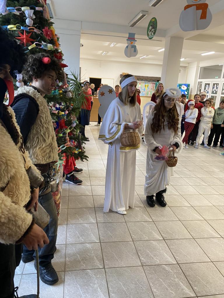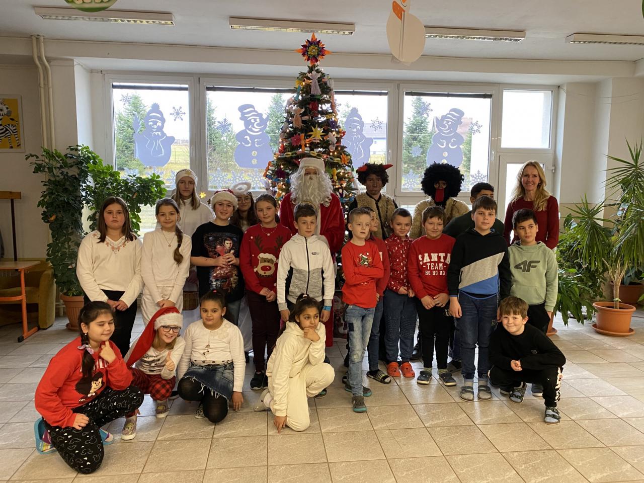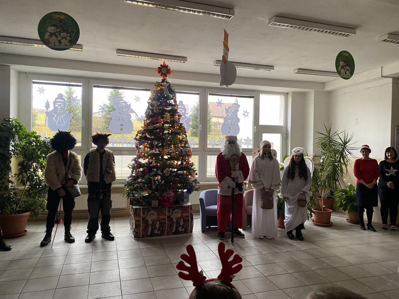 Tak ako každý rok, aj tento, si na nás Mikuláš spomenul. Celé dopoludnie mal Mikuláš spolu so svojimi pomocníkmi anjelmi a čertami veľa práce. Deti vítali Mikuláša básňami a pesničkami a úprimne sa tešili, že ani tento rok na nich nezabudol. Keďže Vianoce nám už klopú na dvere a do príchodu najkrajších sviatkov roka zostáva už len pár dní, Mikuláš mal tento rok výnimočnú úlohu – rozsvietiť vianočný stromček. Pravú vianočnú atmosféru vykúzlili deti svojimi básňami a spoločnou koledou .Vianočný stromček bol dozdobený netradične  - reťazou dobrých skutkov. Na každom kúsku reťaze bol napísaný alebo nakreslený dobrý skutok. Deti zároveň Mikulášovi sľúbili, že dobré skutky budú robiť aj naďalej.