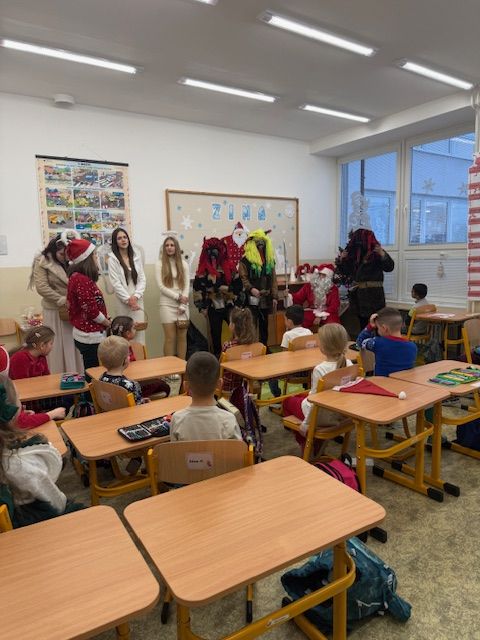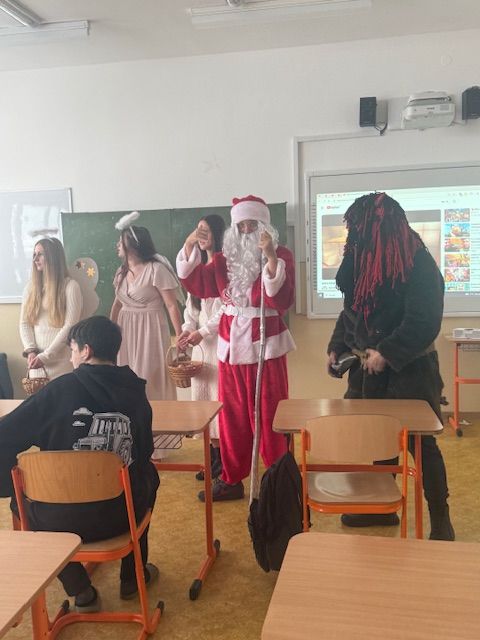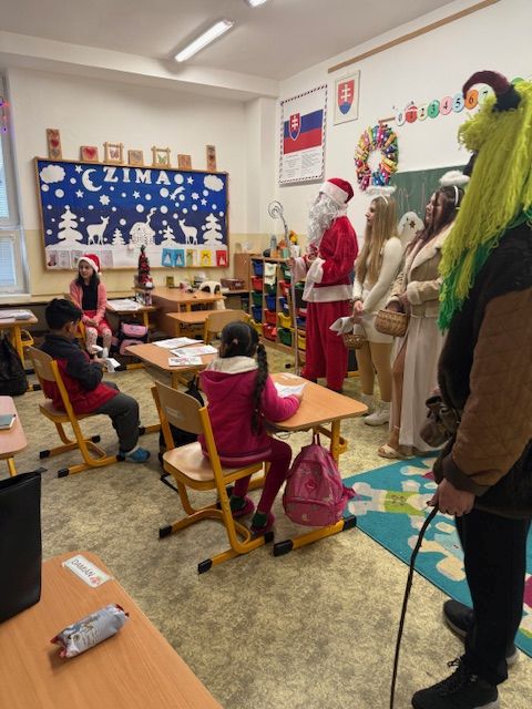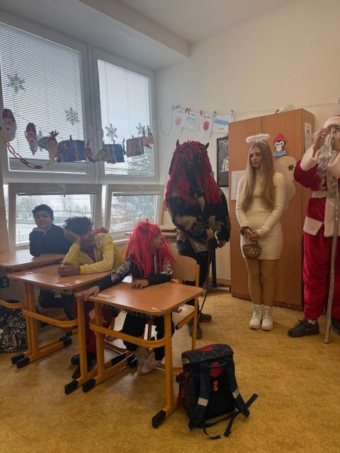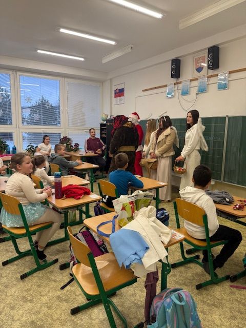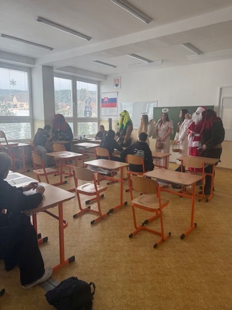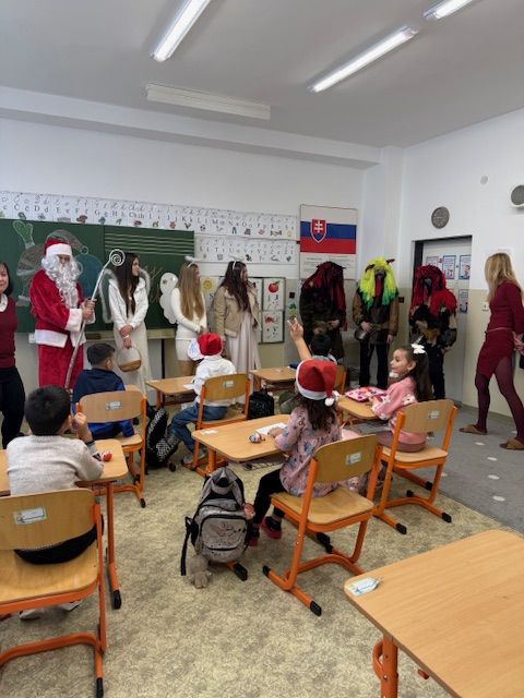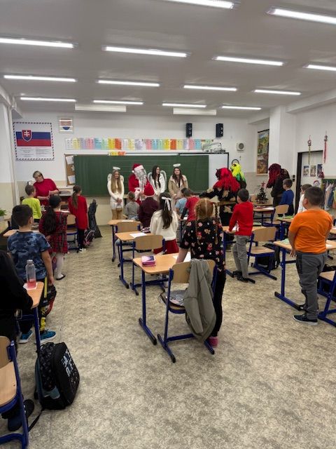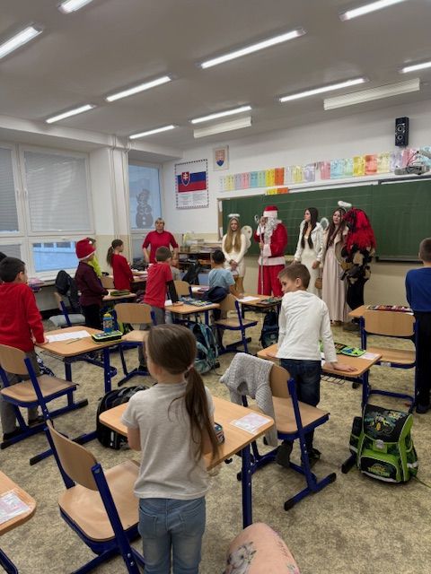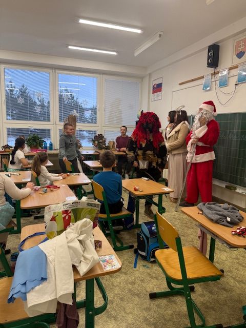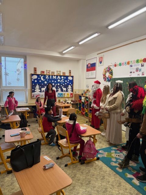V piatok 5. decembra 2025 sme mali v škole návštevu. Pýtate sa: „Koho?“ No predsa Mikuláša! A samozrejme - neprišiel sám! Sprevádzali ho anjelikovia i nezbední čerti.
