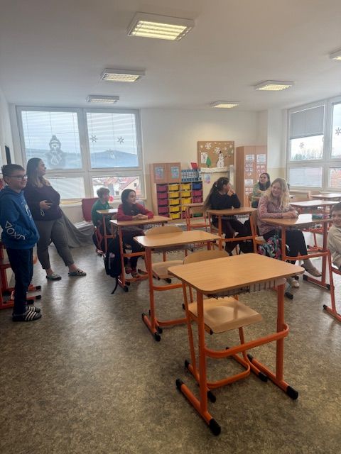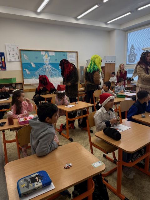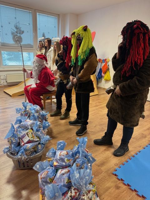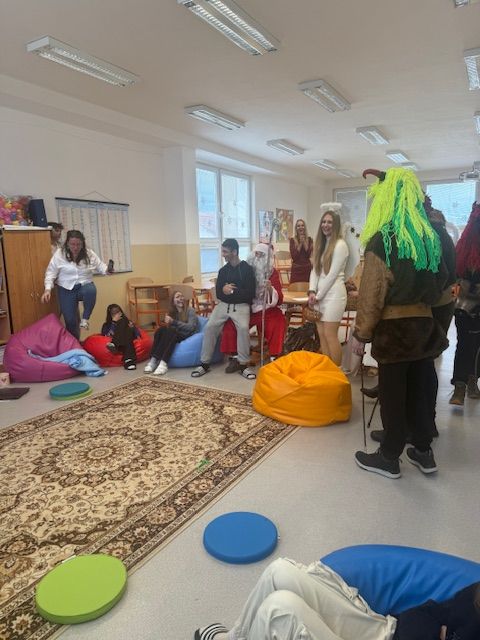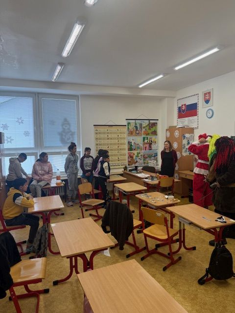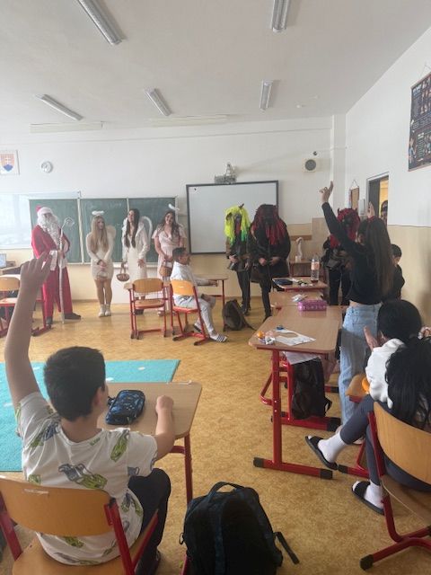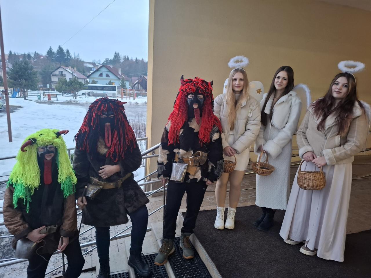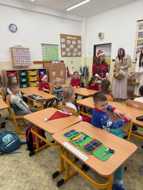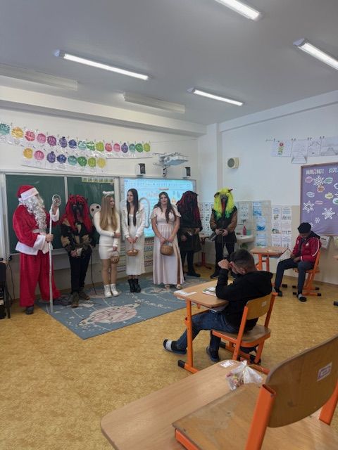 V piatok 5. decembra 2025 sme mali v škole návštevu. Pýtate sa: „Koho?“ No predsa Mikuláša! A samozrejme - neprišiel sám! Sprevádzali ho anjelikovia i nezbední čerti.