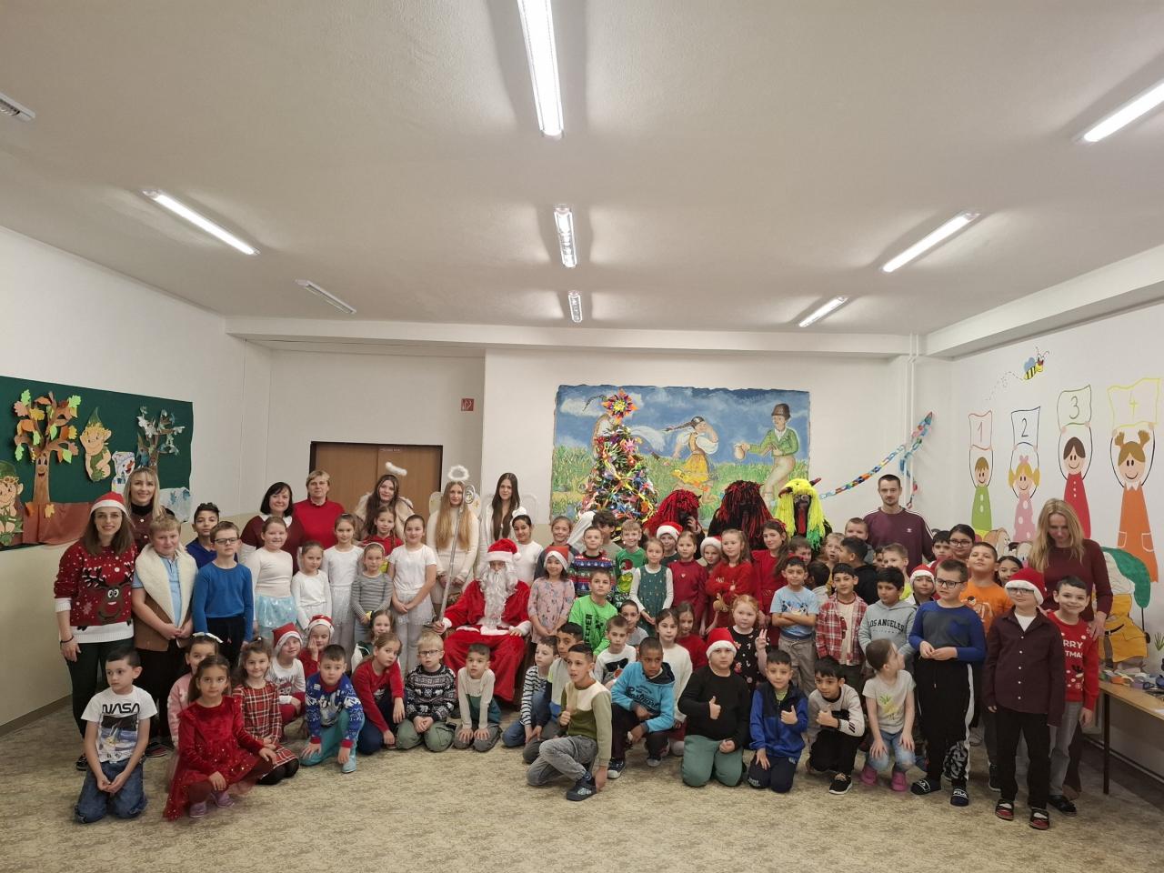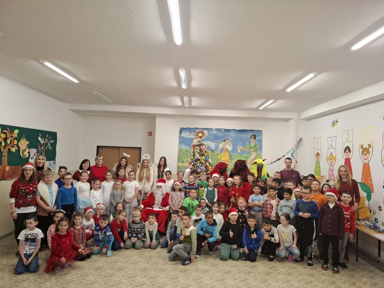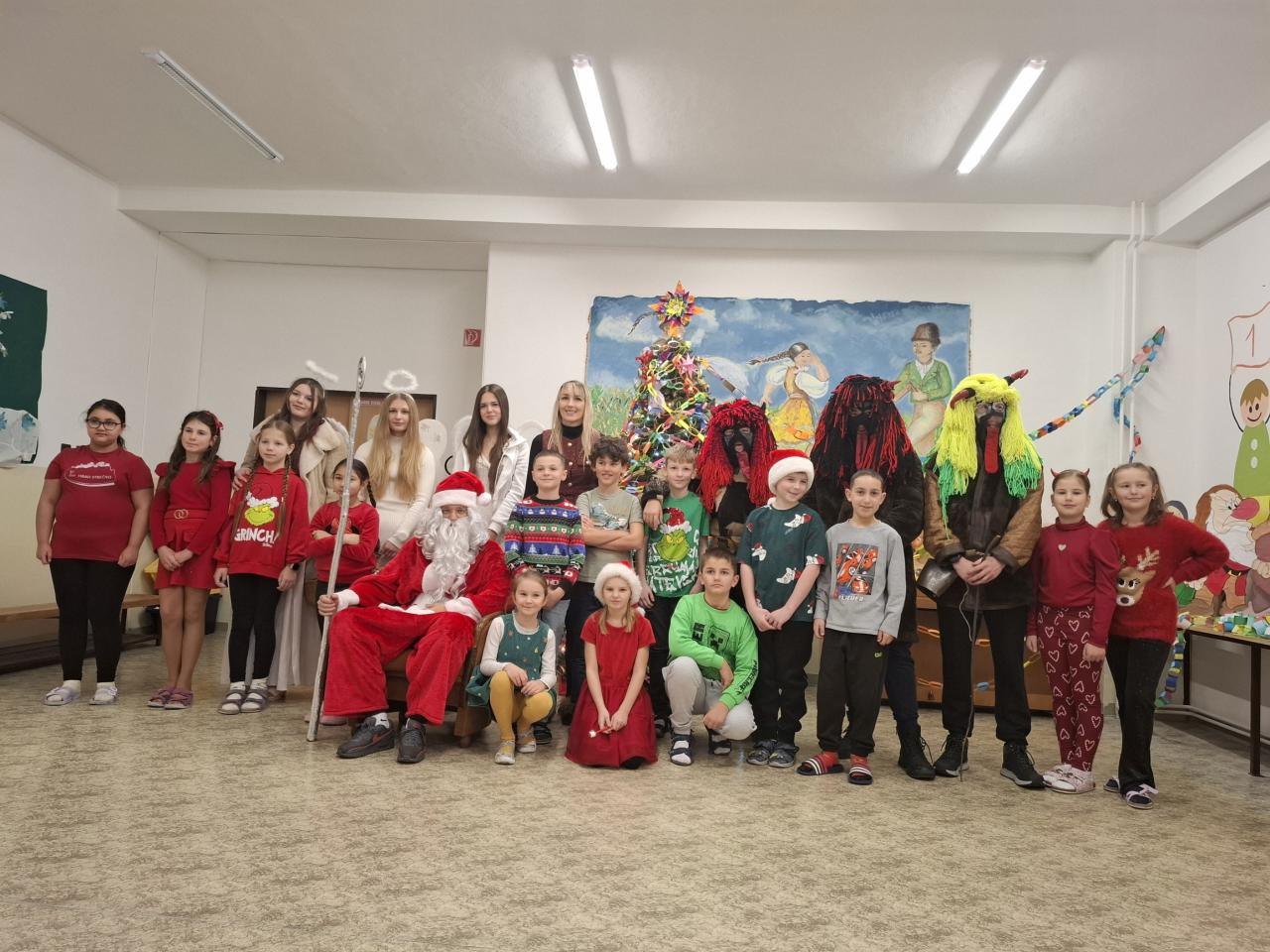 Deti z 1. stupňa a špeciálnych tried sa na Mikuláša už tešili, prihovorili sa mu milými básňami a dokonca na vianočný stromček, ktorý nám mal Mikuláš rozsvietiť pripravili neobyčajnú reťaz – reťaz radosti. Do každého jej očka vložili radosť v podobe slov a obrázkov, ktorými vyjadrovali, čo ich teší, z čoho majú radosť. Mikulášovi sa náš stromček samozrejme veľmi páčil, no s jeho rozsvietením to nebolo také jednoduché. Bolo treba vyriešiť úlohy a poskladať heslo, vďaka ktorému sme stromček rozsvietili. Deti za splnené úlohy dostali sladkú odmenu a spoločné stretnutie ukončili koledou - Každý deň sa radujme.