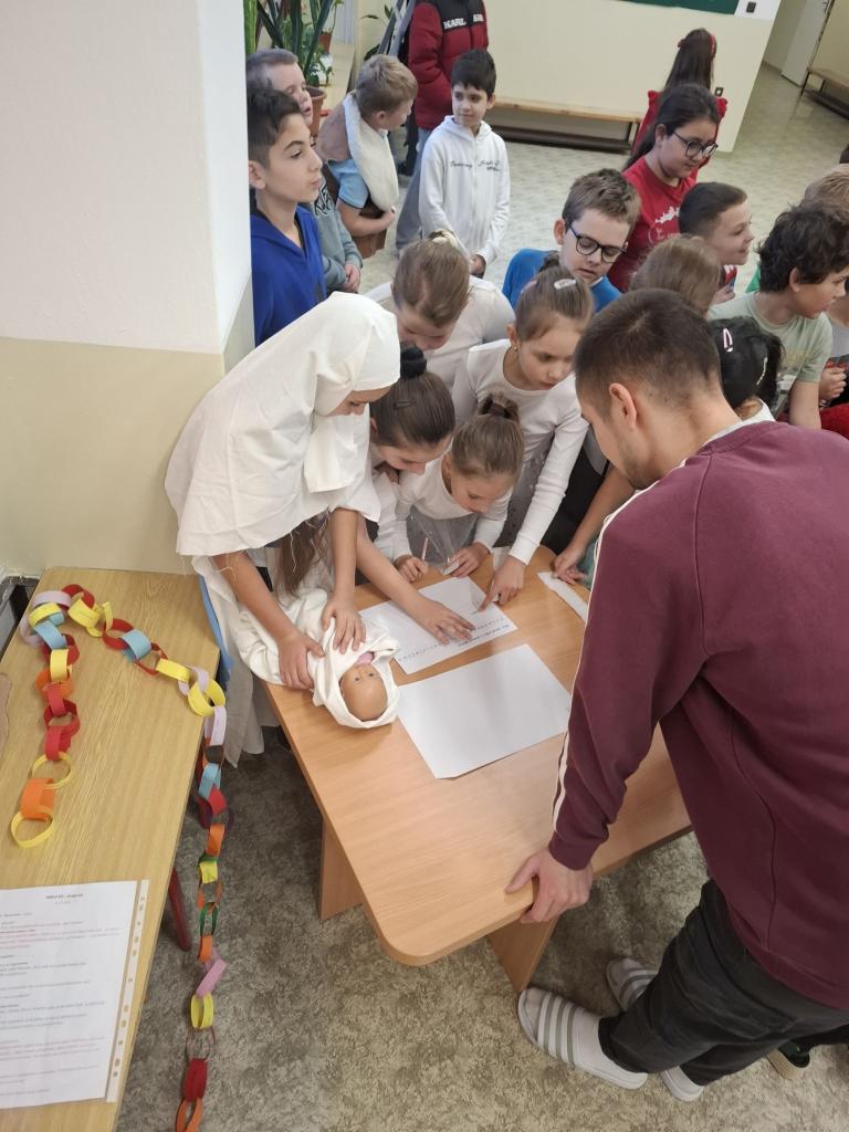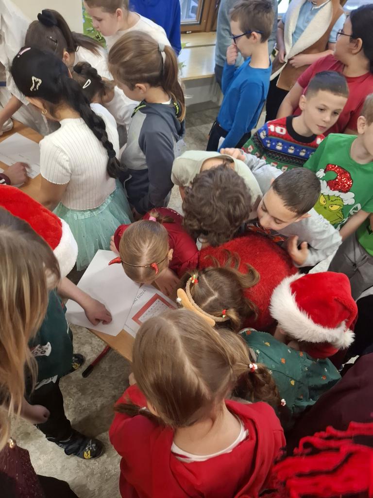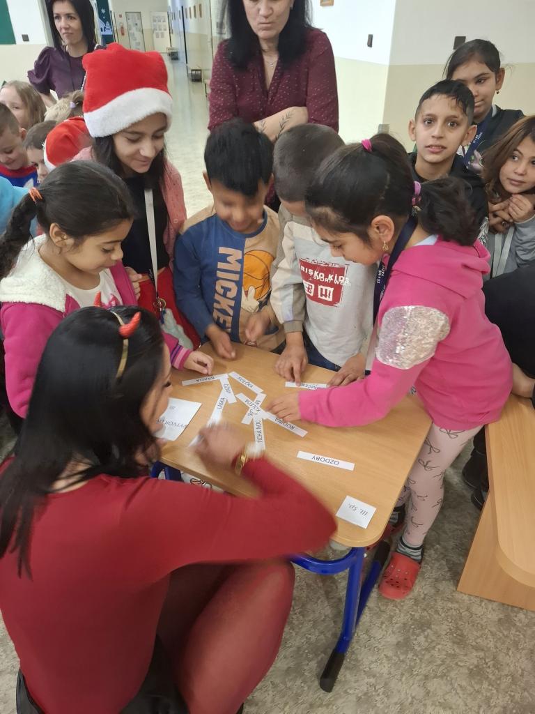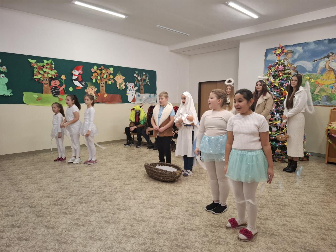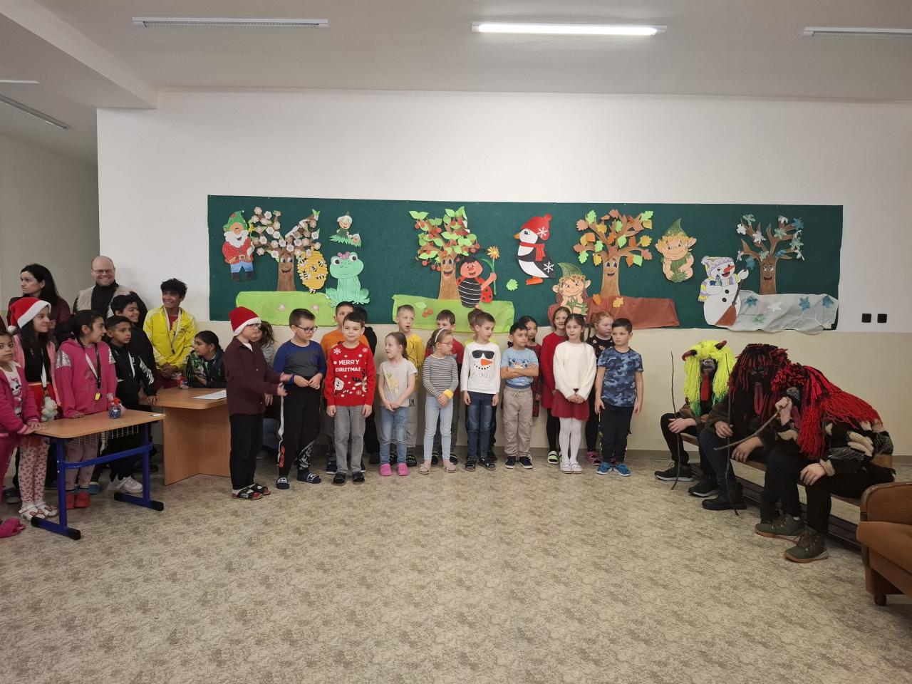 Deti z 1. stupňa a špeciálnych tried sa na Mikuláša už tešili, prihovorili sa mu milými básňami a dokonca na vianočný stromček, ktorý nám mal Mikuláš rozsvietiť pripravili neobyčajnú reťaz – reťaz radosti. Do každého jej očka vložili radosť v podobe slov a obrázkov, ktorými vyjadrovali, čo ich teší, z čoho majú radosť. Mikulášovi sa náš stromček samozrejme veľmi páčil, no s jeho rozsvietením to nebolo také jednoduché. Bolo treba vyriešiť úlohy a poskladať heslo, vďaka ktorému sme stromček rozsvietili. Deti za splnené úlohy dostali sladkú odmenu a spoločné stretnutie ukončili koledou - Každý deň sa radujme.