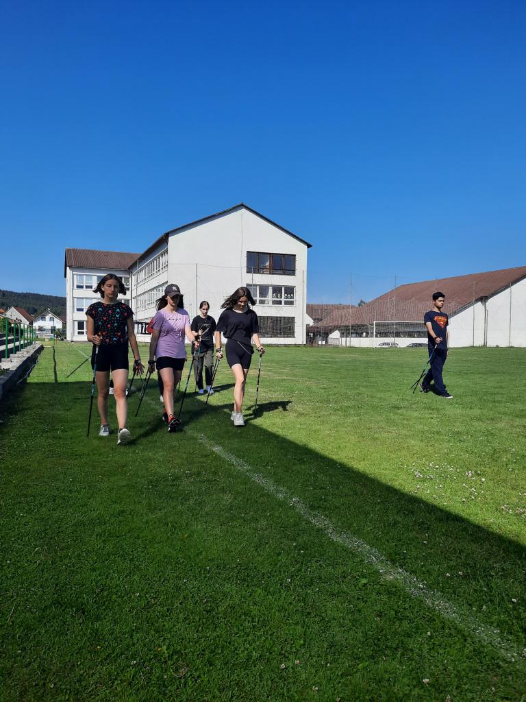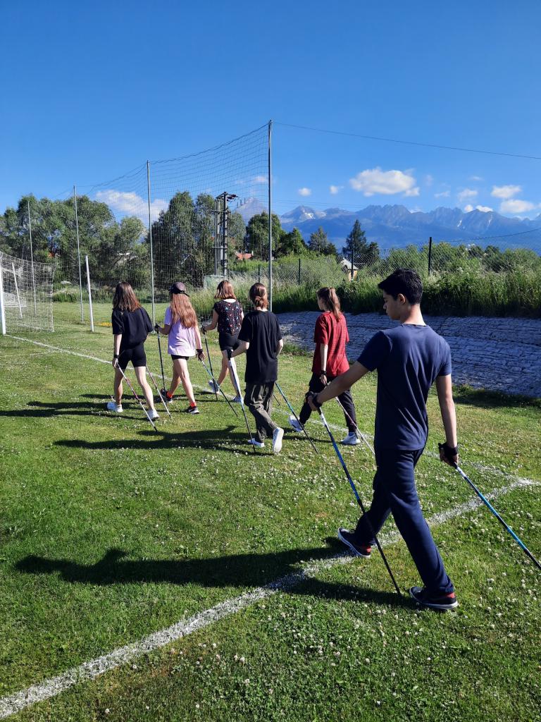 V rámci olympijského týždňa športových aktivít si žiaci a učitelia  mali možnosť vyskúšať novú športovú aktivitu Nordic Walking.  Je to chôdza zo špeciálnymi paličkami s rukavičkou.  Nordic Walking je ozdravno – športová aktivita, ktorú môžu vykonávať všetci bez rozdielu pohlavia, veku, kondície a zdravotného stavu. Na začiatku sme sa rozcvičili, vyskúšali  sme si rôzne nácvičné cvičenia chôdze s paličkami, zahrali sme sa hry na rozvoj koordinácie pohybov a aktivitu sme ukončili strečingom. Každý účastník dostal pamätný list o absolvovaní základov Nordic Walkingu.