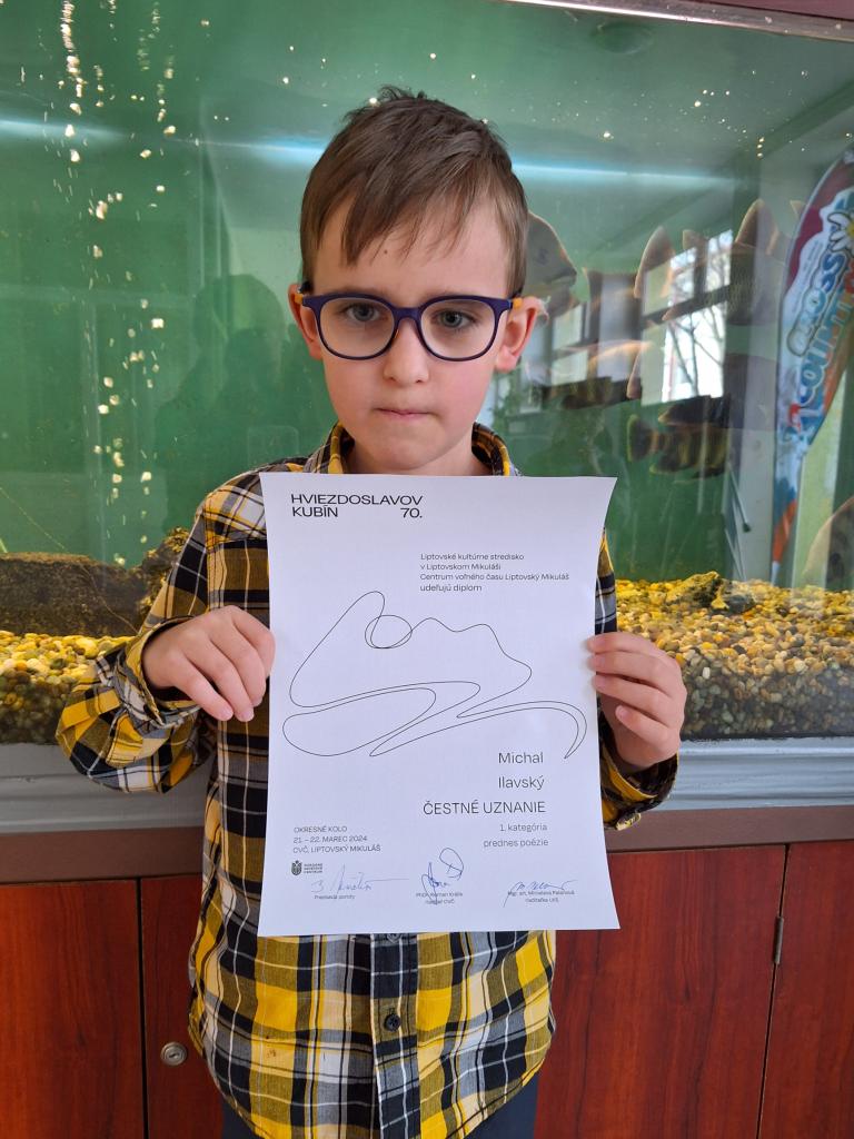 Obom recitátorom ďakujeme za podanie kvalitných výkonov a Michalovi gratulujeme k získaniu čestného uznania.