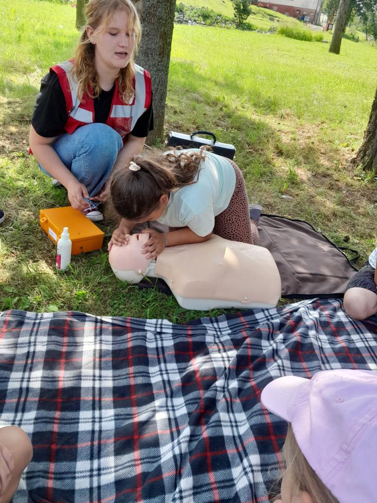 Dňa 21.6.2024 sme prijali pozvanie a zúčastnili sa opekačky, ktorú organizoval miestny spolok Červený kríž. Opekačky sa zúčastnili deti, ktoré navštevovali v tomto školskom roku zdravotnícky krúžok a tie, ktoré školu reprezentovali na súťaži družstiev mladých zdravotníkov. V rámci programu sa žiaci dozvedeli niekoľko nových informácií o miestnej prírode, s pani policajtkou sa porozprávali o bezpečnosti na ceste, poskladali puzzle dopravných značiek, zahrali si pexeso, ba dokonca si mohli vyskúšať špeciálne okuliare, cez ktoré videli ako človek vidí, keď je pod vplyvom alkoholu alebo drog. Ďalšou časťou programu bol nácvik oživovania - KPR. Následne skúšali rôzne spôsoby ako pracovať s trojrohou šatkou a nakoniec si zmerali sily vo vedomostnom kvíze. Každý dostal skvelú cenu, diplom alebo ďakovný list. Celé doobedie sme ukončili opekačkou. Ďakujeme Červenému krížu za pozvanie a príjemne strávný čas.