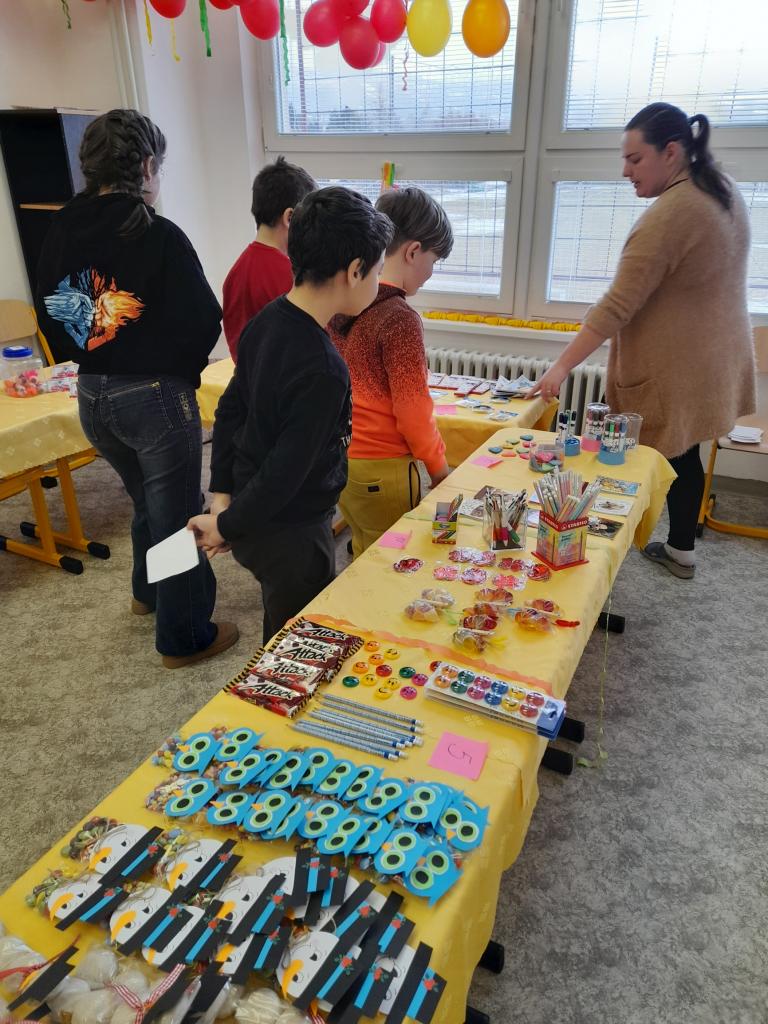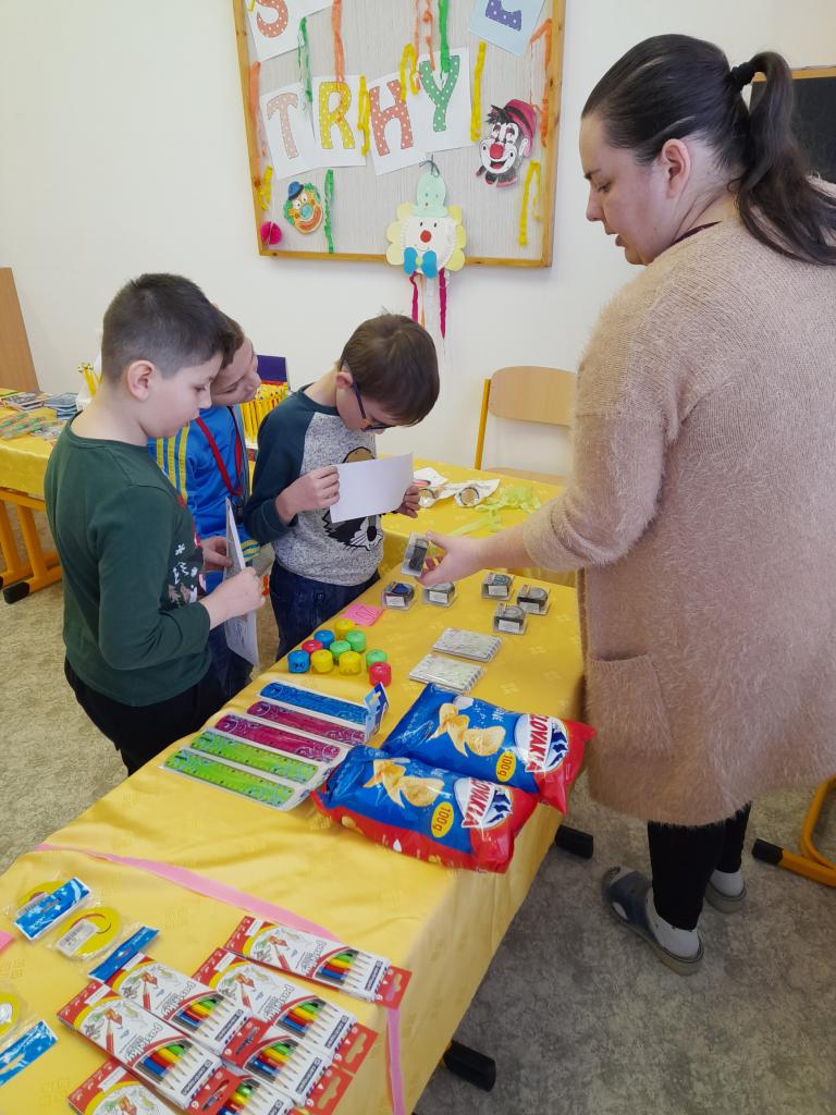 V tomto školskom roku sme sa opäť zapojili do projektu Školská vkladná knižka, ktorá žiakov motivuje k čítaniu s porozumením, písaniu diktátov a rozvíja finančnú  gramotnosť. Za svoju prácu deti získavali dukátiky, ktoré si ukladali na svoju vkladnú knižku. Za zarobené dukátiky si mohli deti v piatok 24.2.2023  na školských trhoch nakúpiť hry, hračky, školské potreby, sladkosti, či iné drobnosti. Motivácia pokračovať v zbieraní dukátov je veľká, veď na konci školského roka sú ďalšie trhy.