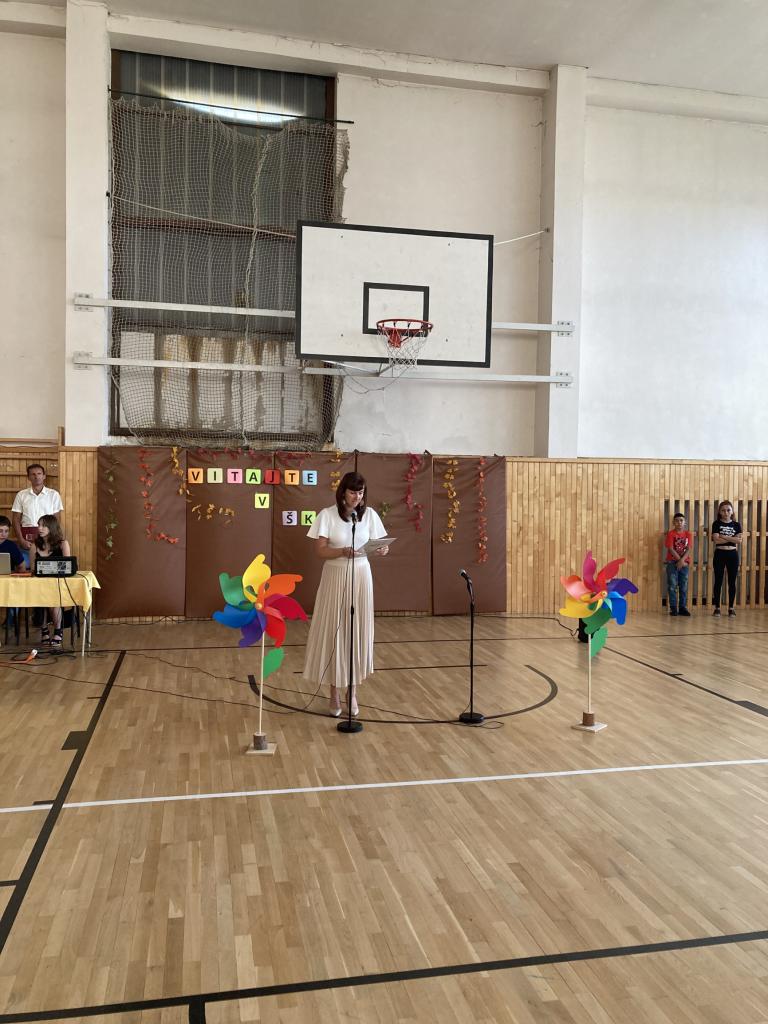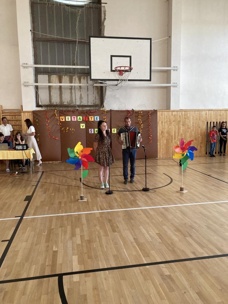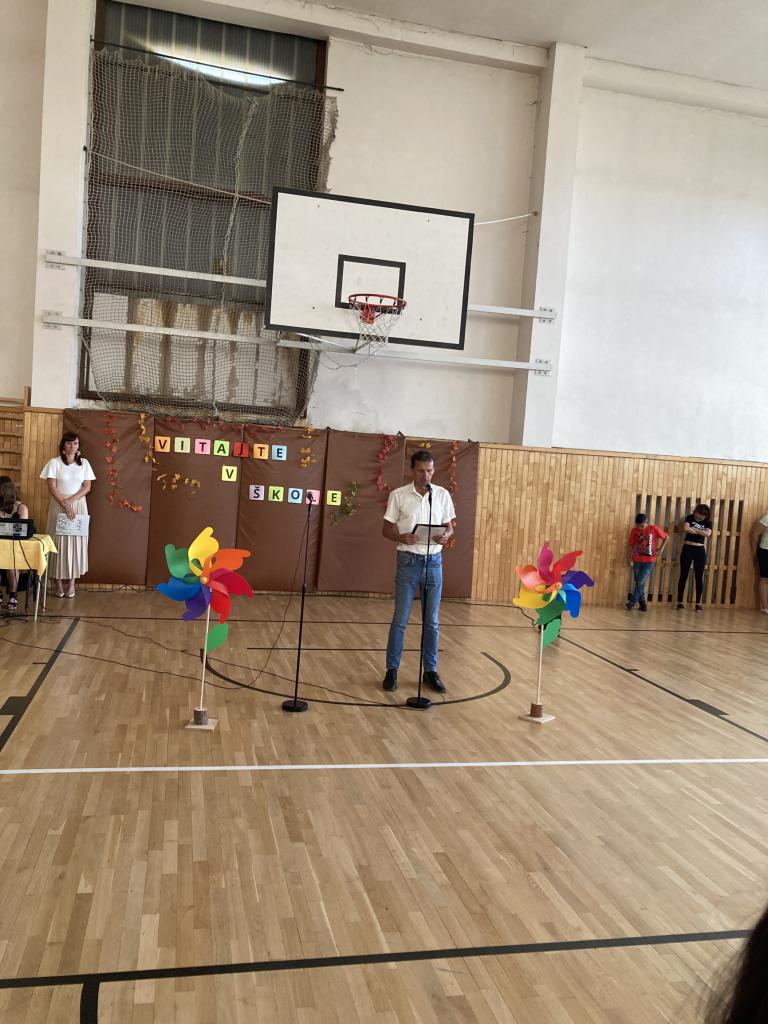 Všetkých srdečne privítala pani riaditeľka Mgr. Miroslava Juhásová, prihovoril sa aj pán starosta Ing. Milan Lištiak a o kultúrny program sa spevom a hudbou postarali  rodičia nášho prváčika, Matúš Ilavský so Zuzkou Užíkovou, a básničkou  tretiačky.