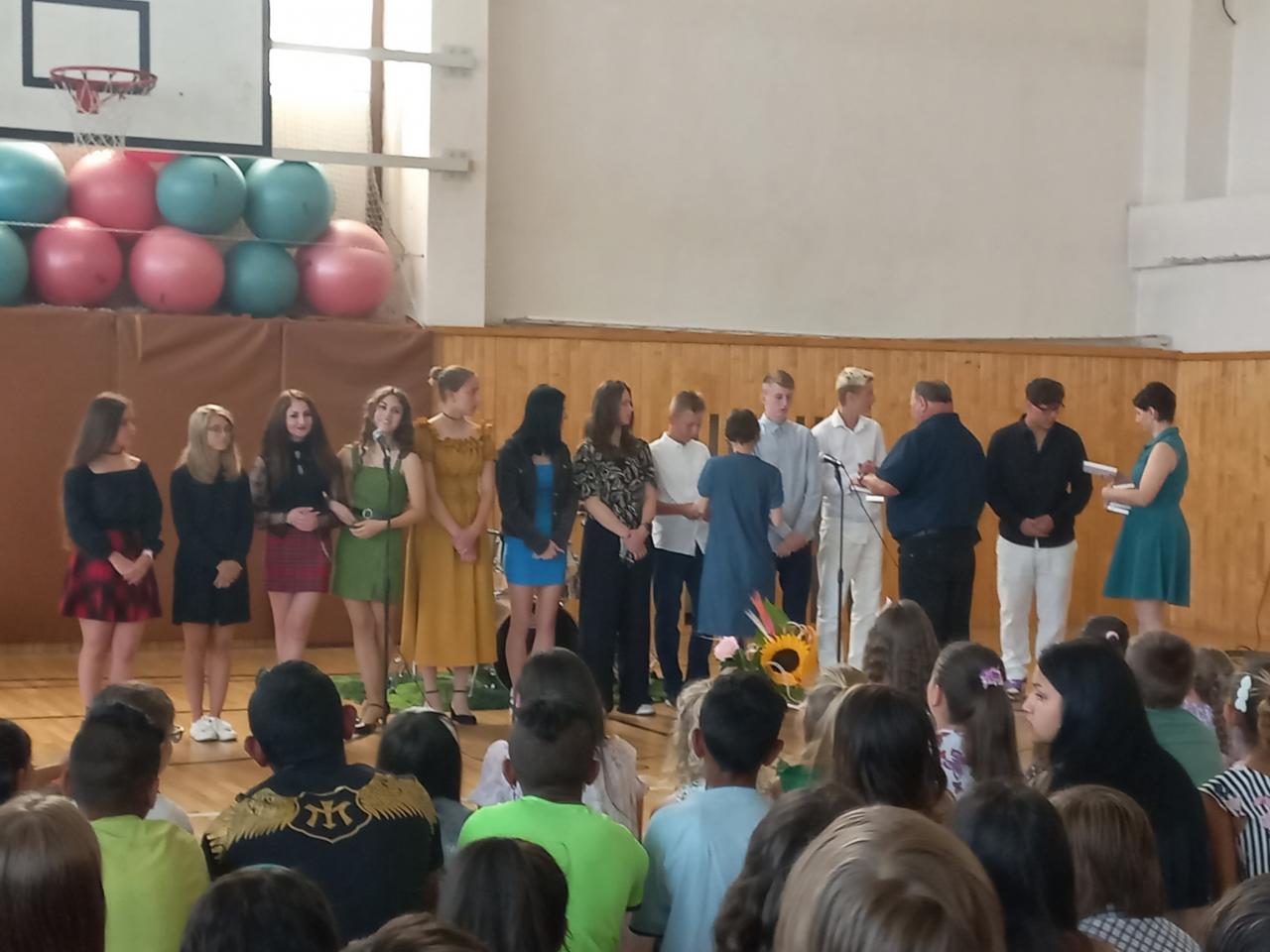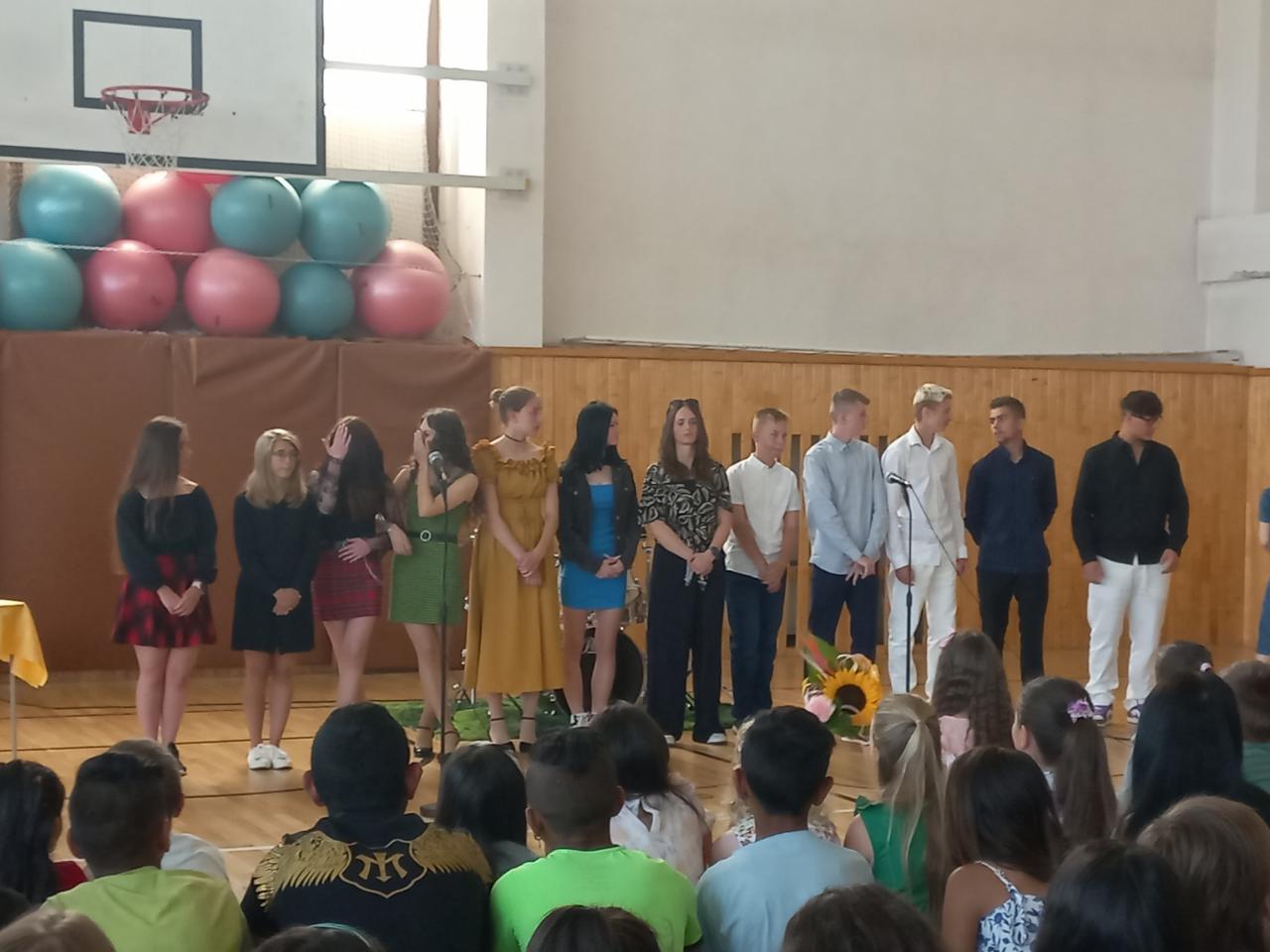 Dňa 30. 6. 2023 sme spoločne ukončili školský rok 2022/2023. Pani riaditeľka zhodnotila desať mesiacov tvrdej práce. Zároveň zazneli slová vďaky, ocenenia a aj slová lúčenia s deviatakmi.