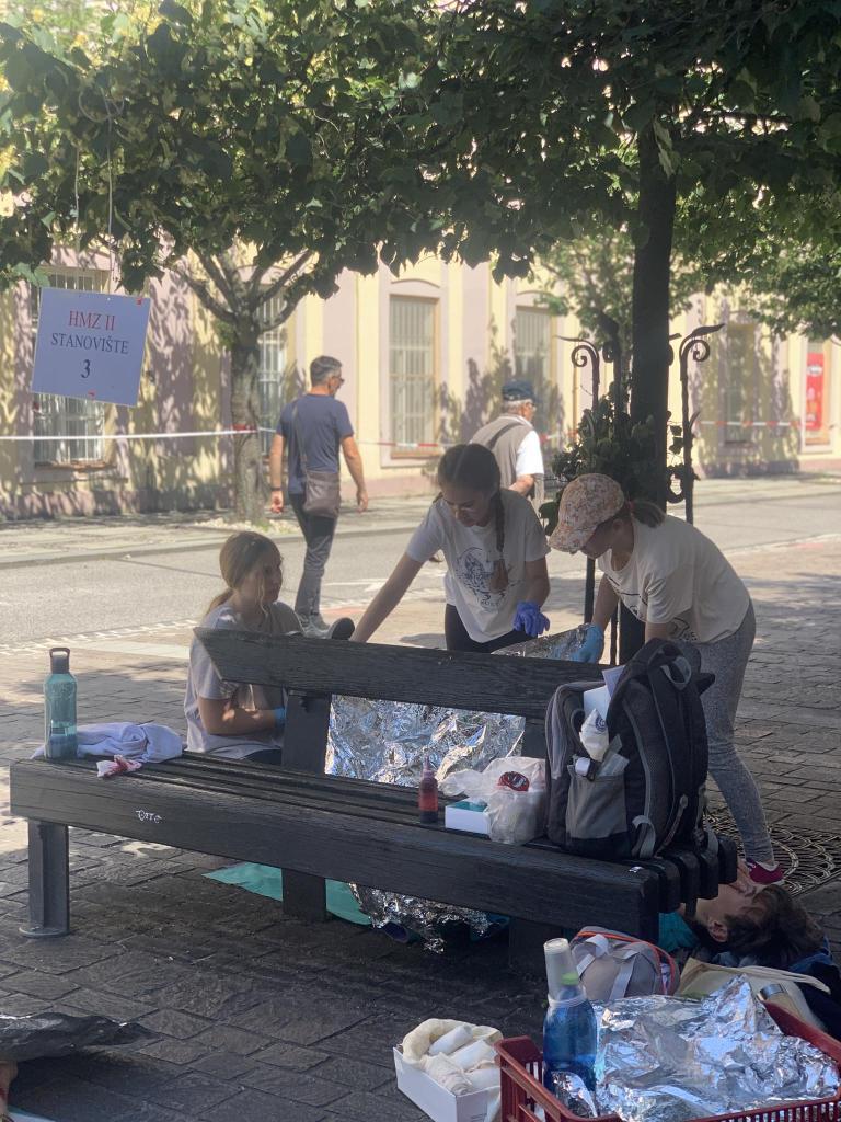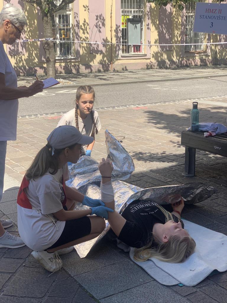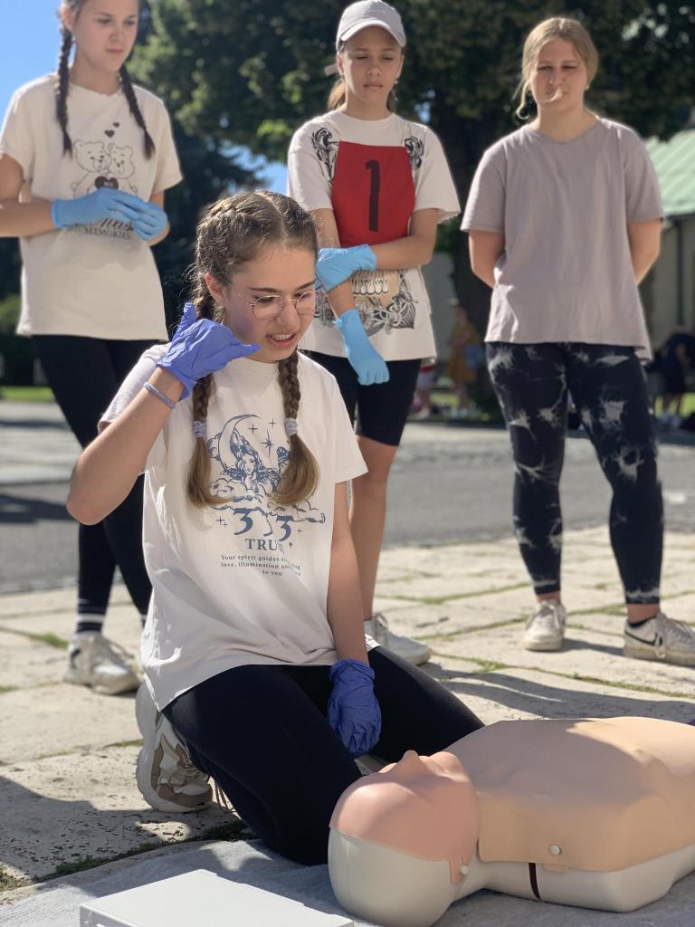 Na tieto a podobné otázky museli teoreticky, ale aj prakticky, odpovedať mladí zdravotníci z našej školy na súťaži družstiev mladých zdravotníkov na námestí v Liptovskom Mikuláši v utorok 18.6.2024. Súťaže sa zúčastnili žiaci zo zdravotníckeho krúžku a vybrané žiačky z druhého stupňa. Dve päťčlenné družstvá zabojovali o najlepšie podanie prvej pomoci. Museli predviesť správny postup pri oživovaní (KPR), ošetriť odreninu, pohryznutie, zlomeniny a iné poranenia, zabezpeciť protišokové opatrenia (5T) a zavolať sanitku. Obe družstvá podali výborné výkony, ukázali všetko, čo vedeli a spoločnými silami pomohli každému "zranenému" figurantovi. Svoje znalosti preukázali aj na vedomostnom stanovišti, kde získali plný počet bodov. Hoci sa neumiestnili na prvých troch miestach, aj tak sú víťazmi, pretože víťaz je každý, kto dokáže podať prvú pomoc a zachrániť tak život. Žiačky sa vracali domov unavené, ale so skvelým pocitom, že dokážu pomôcť ľuďom v núdzi.