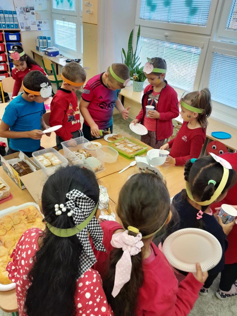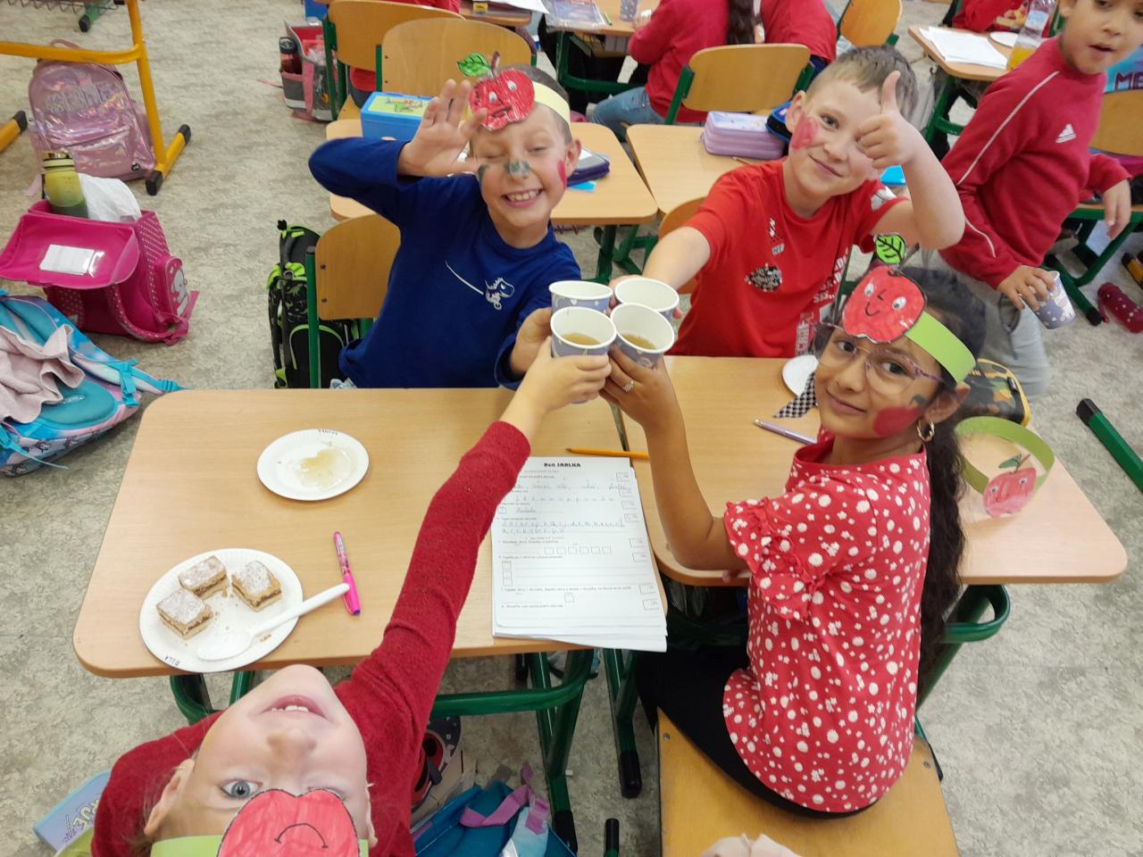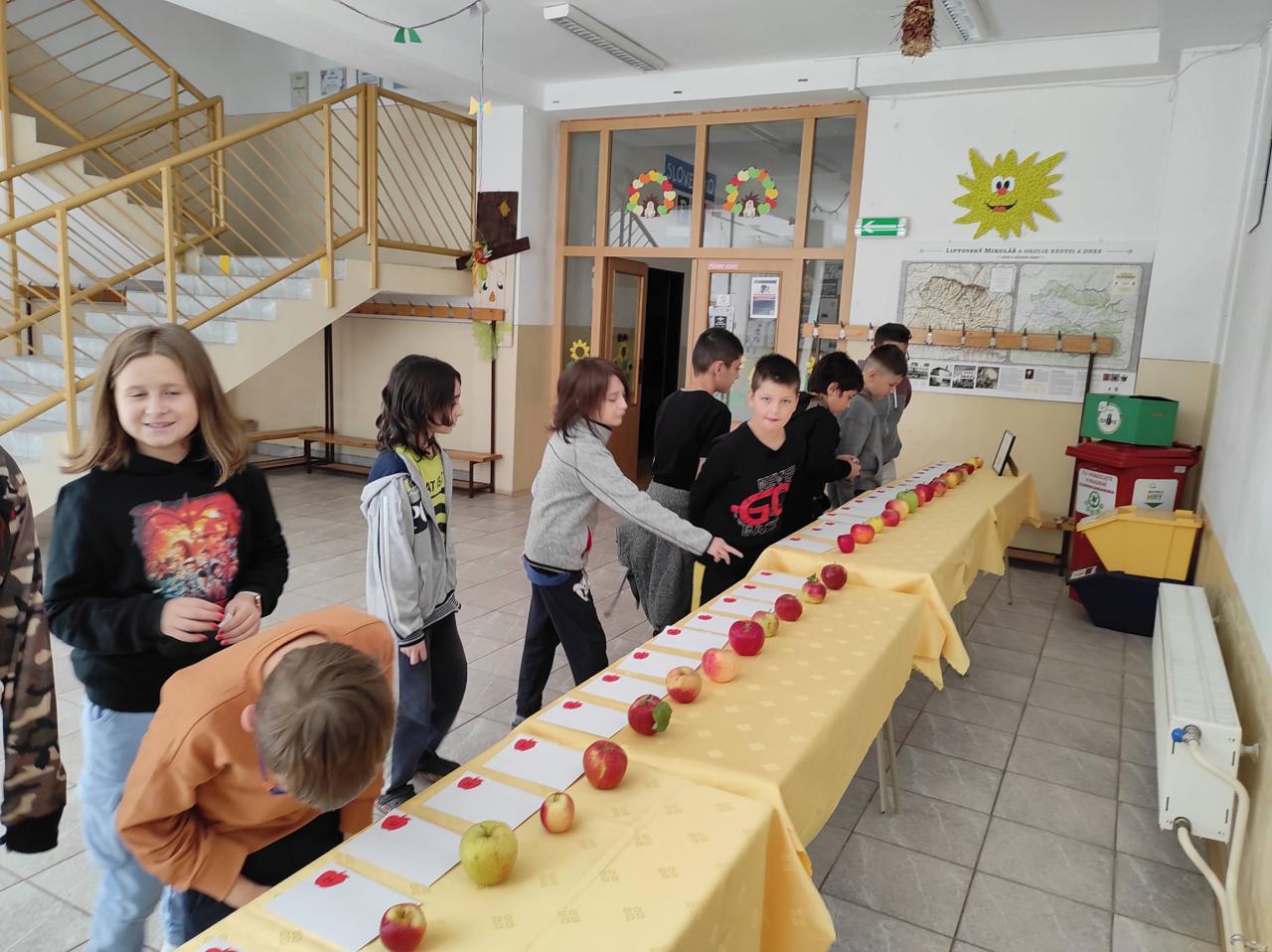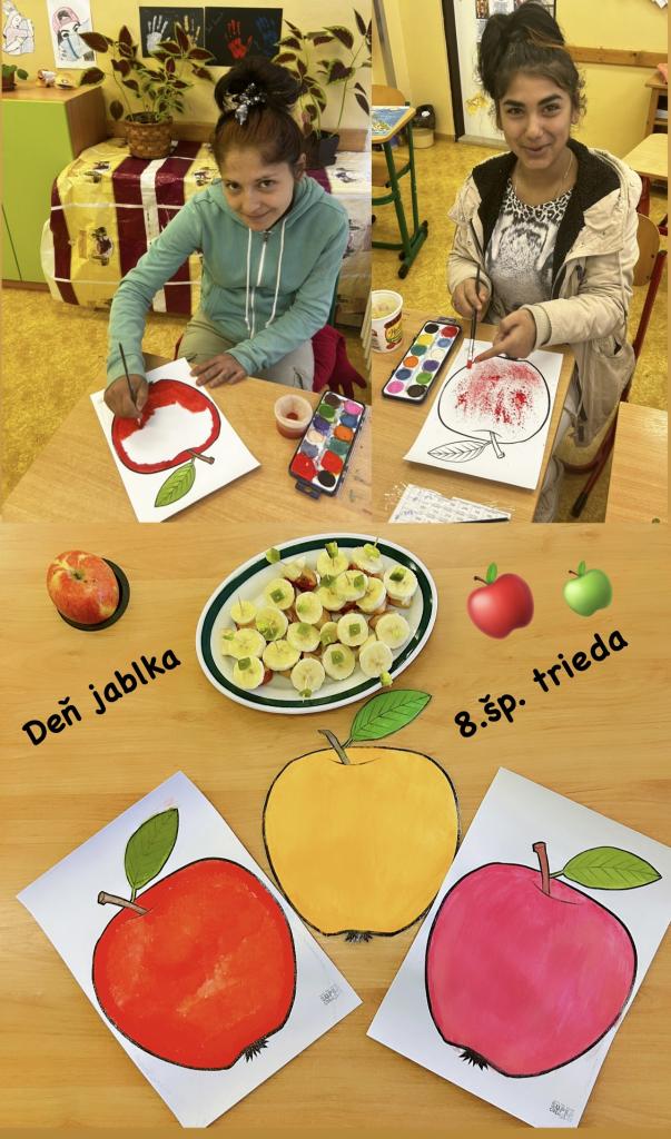Deň jablka si pripomenuli aj žiaci v triedach rôznymi aktivitami – ochutnávali jablkové koláčiky a rôzne dobroty z jabĺk, prišli oblečení vo farbách jabĺčok, tvorili čelenky, počítali jabĺčkové príklady, skladali jablkové puzzle....