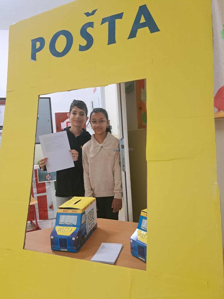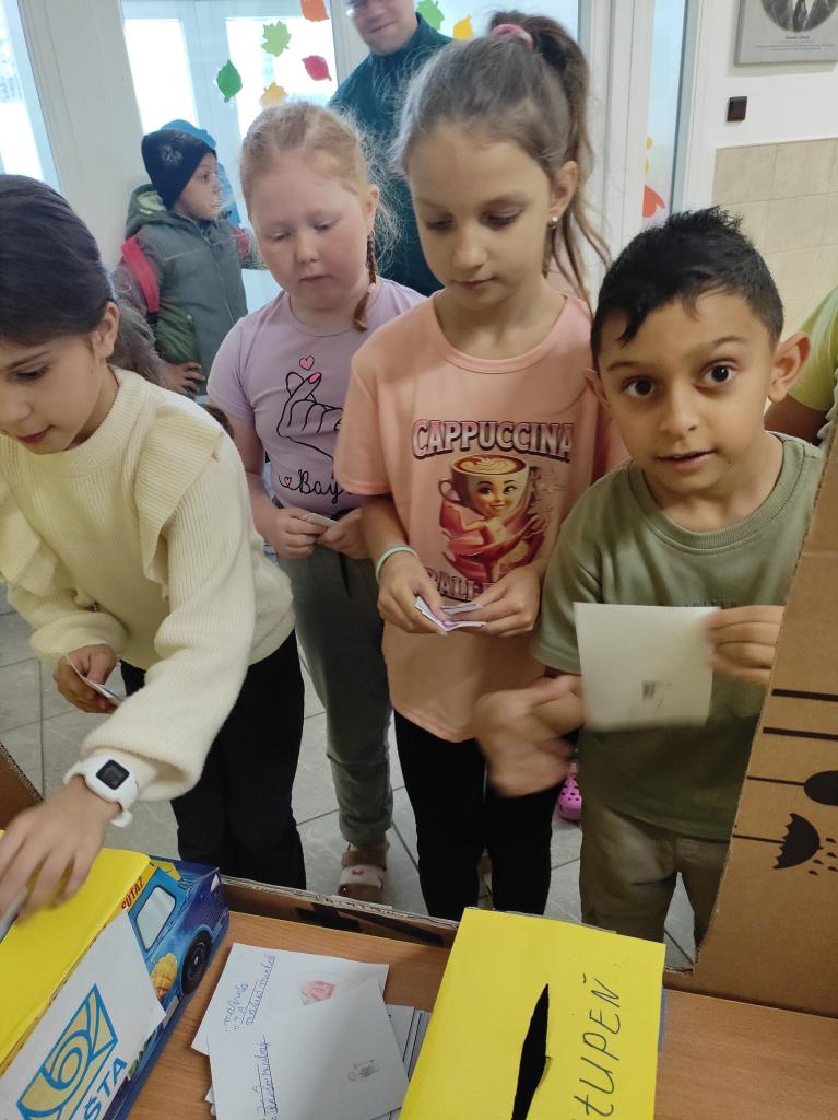Aby si žiaci prácu poštárov vedeli lepšie predstaviť, pripravili sme im v škole aktivitu „Pošli list kamarátovi.“