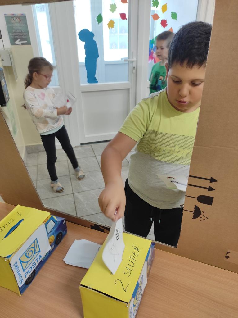 Žiaci najprv napísali/nakreslili, následne ho vhodili do poštového auta v poštovom okienku, ktoré ich čakalo na vrátnici. Žiaci zo školského parlamentu sa zahrali na poštárov, poštu si vyzdvihli, roztriedili a napokon rozniesli po jednotlivých triedach. Všetky listy našli svojich majiteľov a veríme, že ich aj potešili.