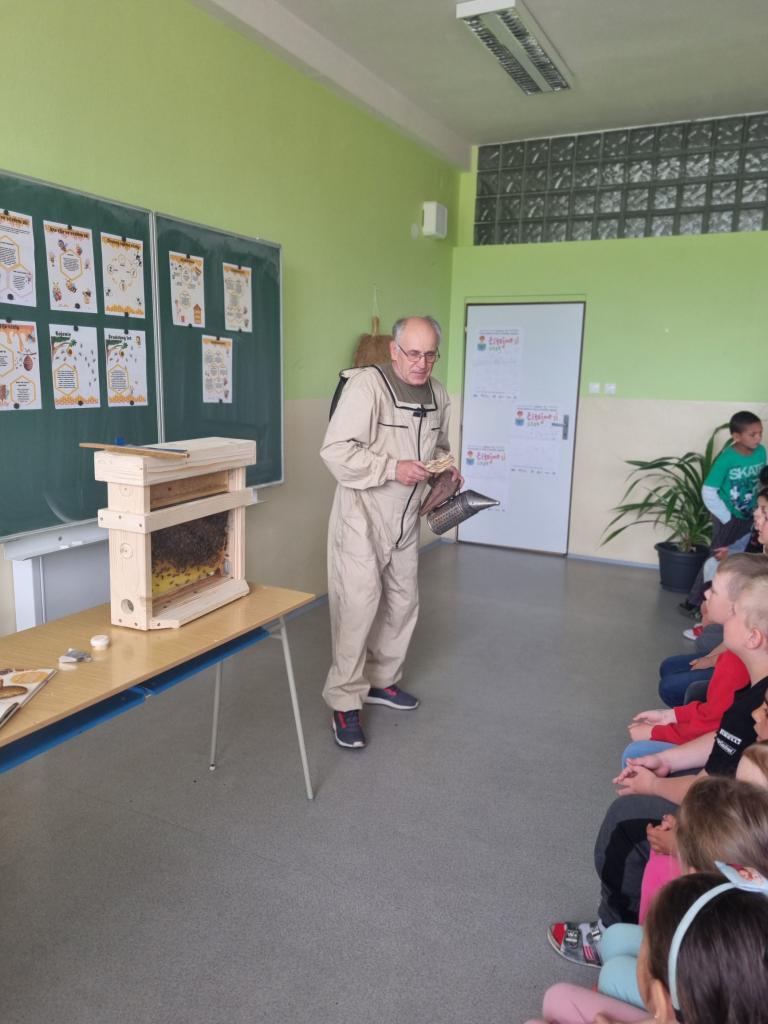 Aj tento známy citát dnes zaznieval na hodinách žiakov 1. – 6. triedy, kedy sme sa dozvedeli množstvo zaujímavých informácií. Od vývinu včely – robotníc, kráľovnej, trúdov až po skladbu včelieho úľa, či vytáčanie medu. V neposlednom rade o prínose včiel pre človeka a ich významnú úlohu vo svete. Deti si mohli pozrieť včelí úľ a jeho fungovanie zblízka. Ako názornú ukážku mali k dispozícii prototyp úľa so skutočným včelstvom, ktorý si špeciálne pre nás pripravil pán Šeďo, za čo mu patrí veľká vďaka. Oči žiakov sa rozžiarili v okamihu odkrytia letáčika a my veríme, že už teraz máme medzi našimi žiakmi pokračovateľov tohto krásneho remesla.