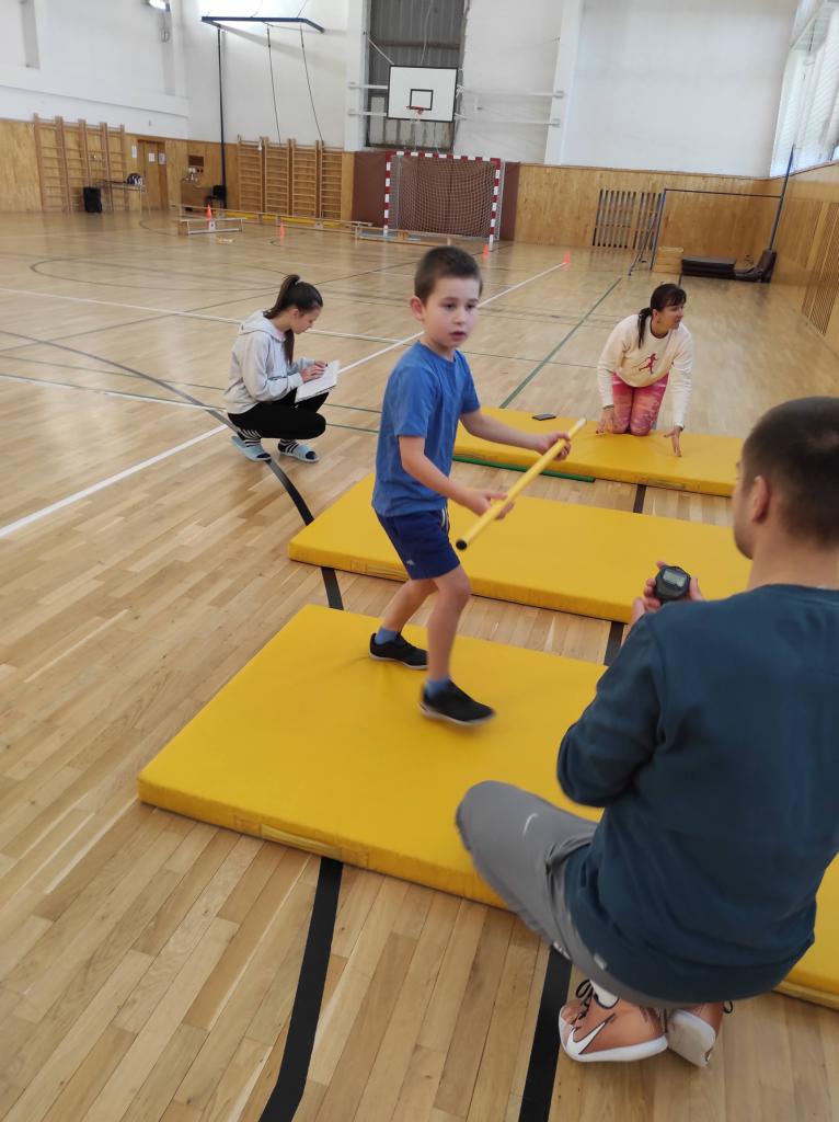 Dňa 22.10.2024 sa v našej škole uskutočnilo testovanie pohybových predpokladov prvákov a tretiakov. Cieľom projektu testovania pohybových predpokladov žiakov je informovať rodičov o stave pohybových predpokladov dieťaťa v porovnaní s deťmi, ktoré boli otestované v rámci celého populačného ročníka v SR. Zároveň poradiť/nasmerovať deti na športy, kde môžu uplatniť vrodené predpoklady. Testovacia batéria pre identifikáciu pohybových predpokladov žiakov 1. a 3. ročníkov ZŠ pozostáva z týchto disciplín: telesná výška a telesná hmotnosť, predklon v sede s dosahovaním, opakovaná zostava s tyčou, výdrž v zhybe nadhmatom, skok do diaľky z miesta, ľah-sed, kotúľanie 3 lôpt, člnkový beh 4 x 10 m, vlajková naháňačka a viacstupňový vytrvalostný člnkový beh na 20 metrov. Odmenou pre žiakov za podaný výkon bola pamätná medaila.
