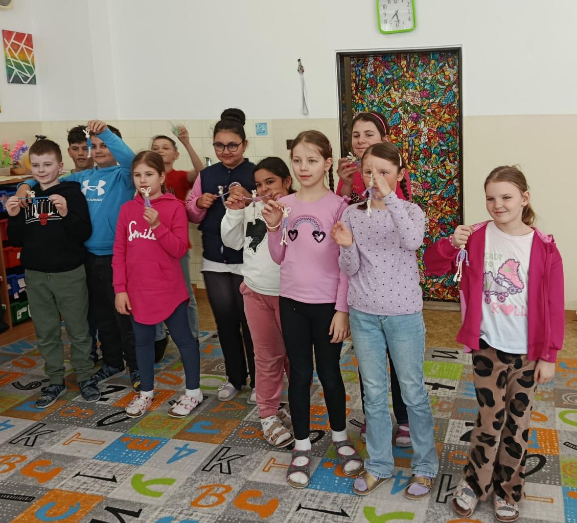 Pre deti bol pripravený zaujímavý a netradičný tvorivý program – pod vedením organizátorov si vlastnoručne vyrábali krásneho veľkonočného zajka technikou macramé. Táto aktivita bola pre mnohých žiakov novou skúsenosťou, pri ktorej si osvojovali základy práce s priadzou, viazania uzlov a rozvíjali svoju trpezlivosť.