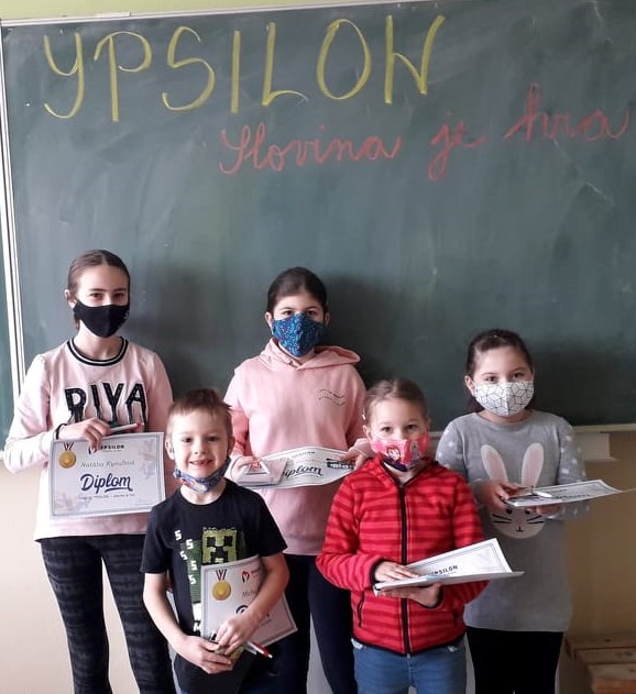 Aj v tomto školskom roku riešilo 25 žiakov 1. a 2. stupňa úlohy súťaže YPSILON-slovina je hra. Ide o zábavnú súťaž pre žiakov základných škôl v predmete slovenský jazyk a literatúra. Hlavným cieľom je propagovať slovenský jazyk ako vyučovací predmet. Preto je primárnym poslaním súťaže zbaviť žiakov negatívnych pocitov, ktoré sa často spájajú s vyučovaním tohto predmetu. Súťažné úlohy sú zamerané na rozvoj žiackej originality, tvorivosti a aktívneho myslenia. Všetci žiaci, ktorí sa zapojili, boli odmenení diplomom a malou odmenou. Šiesti žiaci boli úspešní na 100 %. Z prvého stupňa to boli: Rebeka Hálková, Dorota Kočtúchová, Barbora Bartková, Michael Novák z 1. triedy a Simona Gulašiová z 3.triedy. Z druhého stupňa bola stopercentnou riešiteľkou Natália Rysuľová zo 6.triedy. Blahoželáme!
