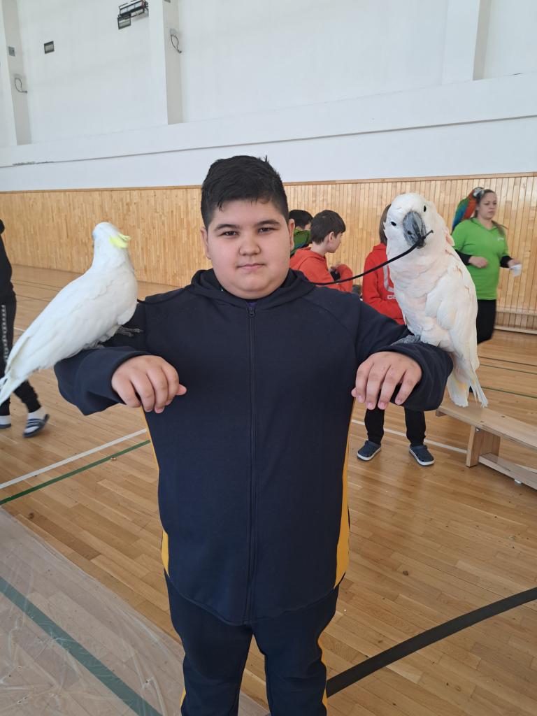 Očká našich žiakov sa rozžiarili, na tvárach sa im vyčaril úsmev, keď vošli do telocvične a v nej lietali pestrofarebné papagáje. Našu školu navštívilo ARAKOVO so svojím environmentálnym programom s papagájmi.