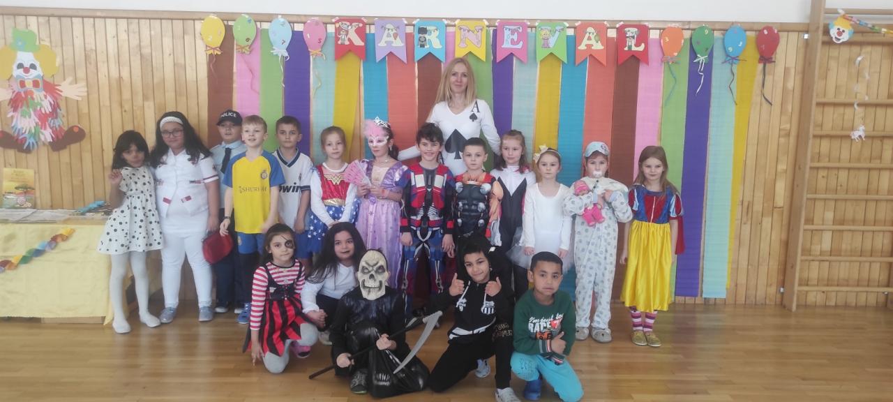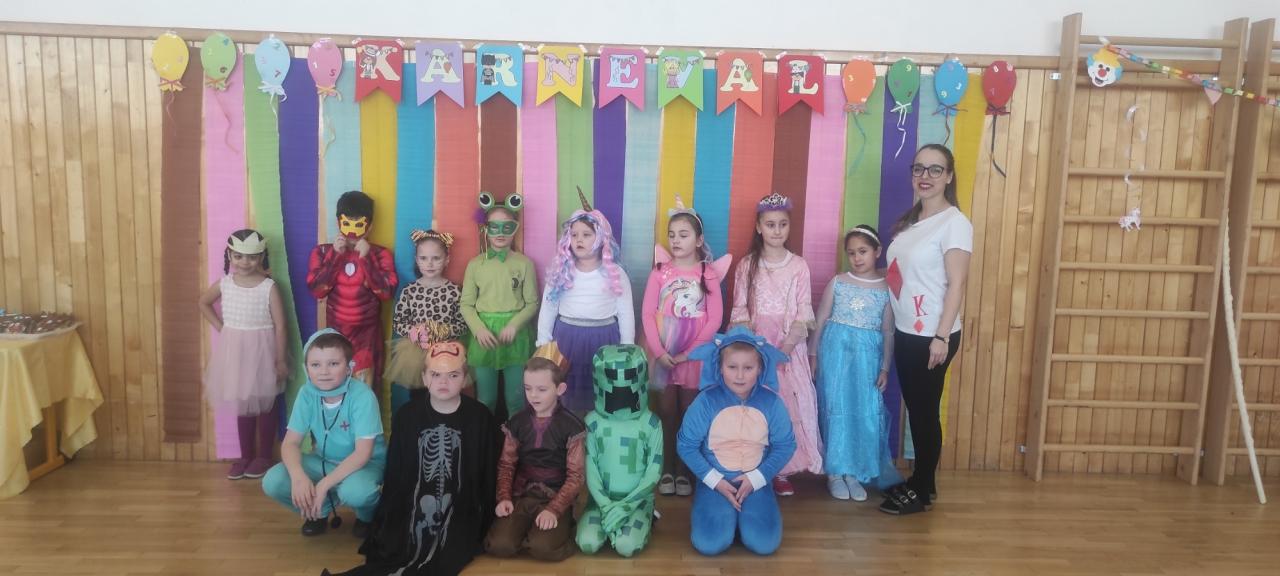 V piatok 16. februára 2024 bolo v našej telocvični naozaj veselo. Vedľa seba sa ocitli zdanlivo nezlučiteľné postavy - princezné, bojovníci, čarodejníci, kuchárka, policajt, žabka, baletka, jednorožec.